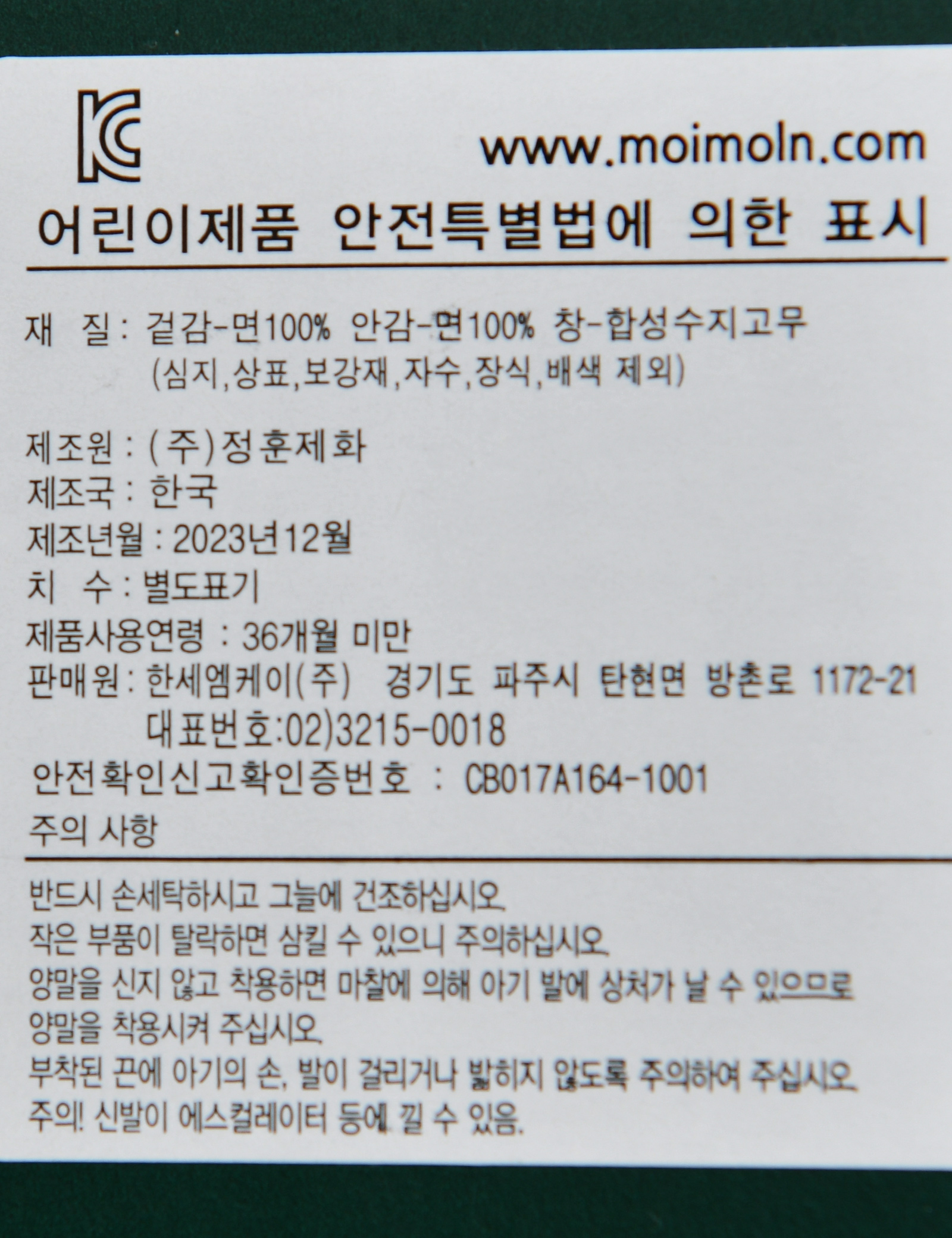 해당 인증정보는 판매자가 등록한 것으로 등록정보에 대한 일체의 책임은 판매자에게 있습니다.