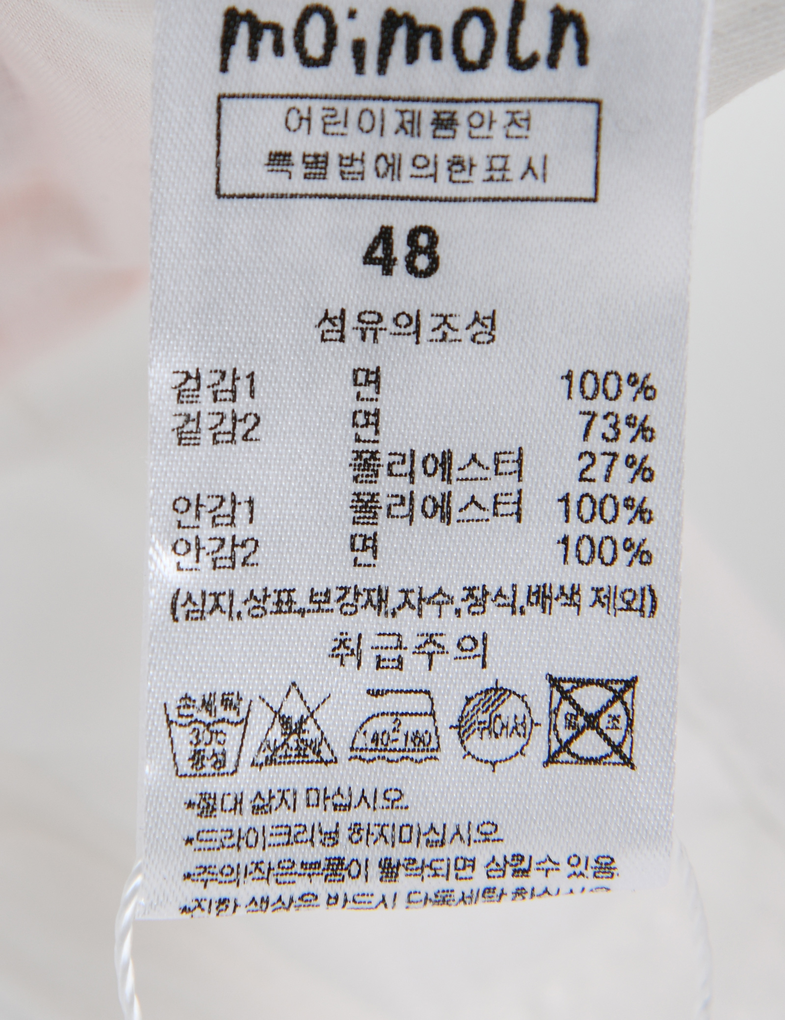 취급시 주의사항 본 세품은 손세탁 하십시오(케어라벨 참고)