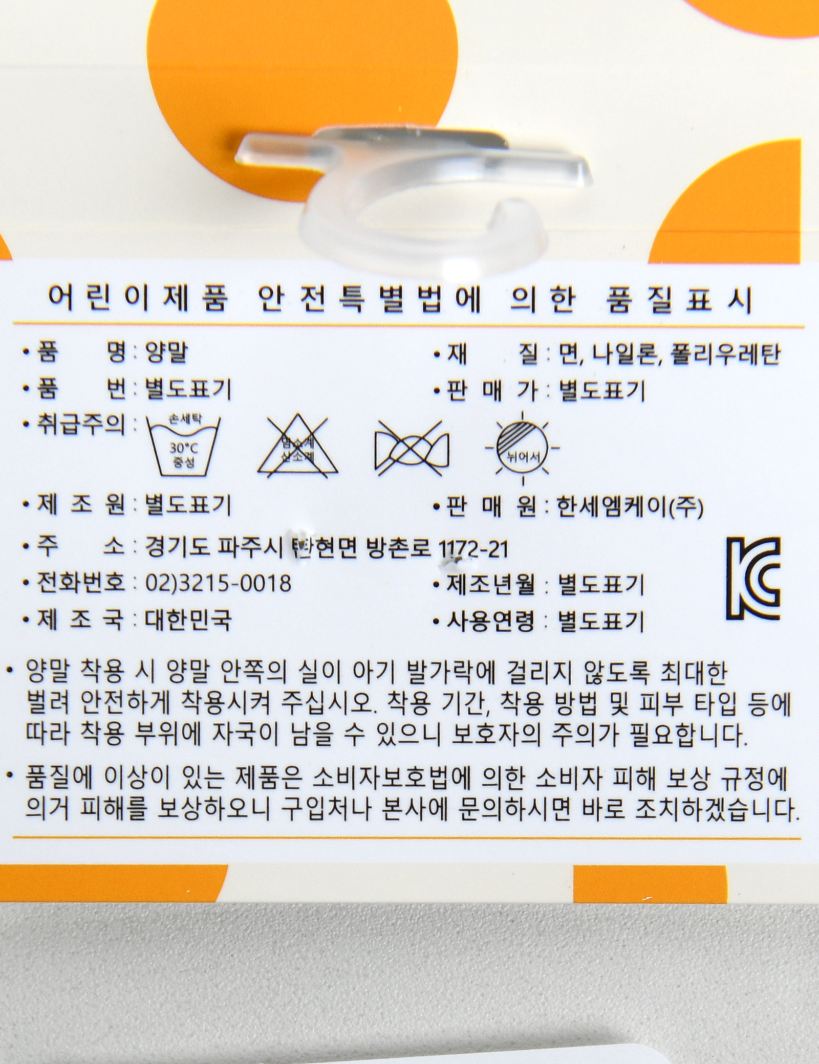 A/S 책임자와 전화번호 본 세품은 손세탁 하십시오(케어라벨 참고)