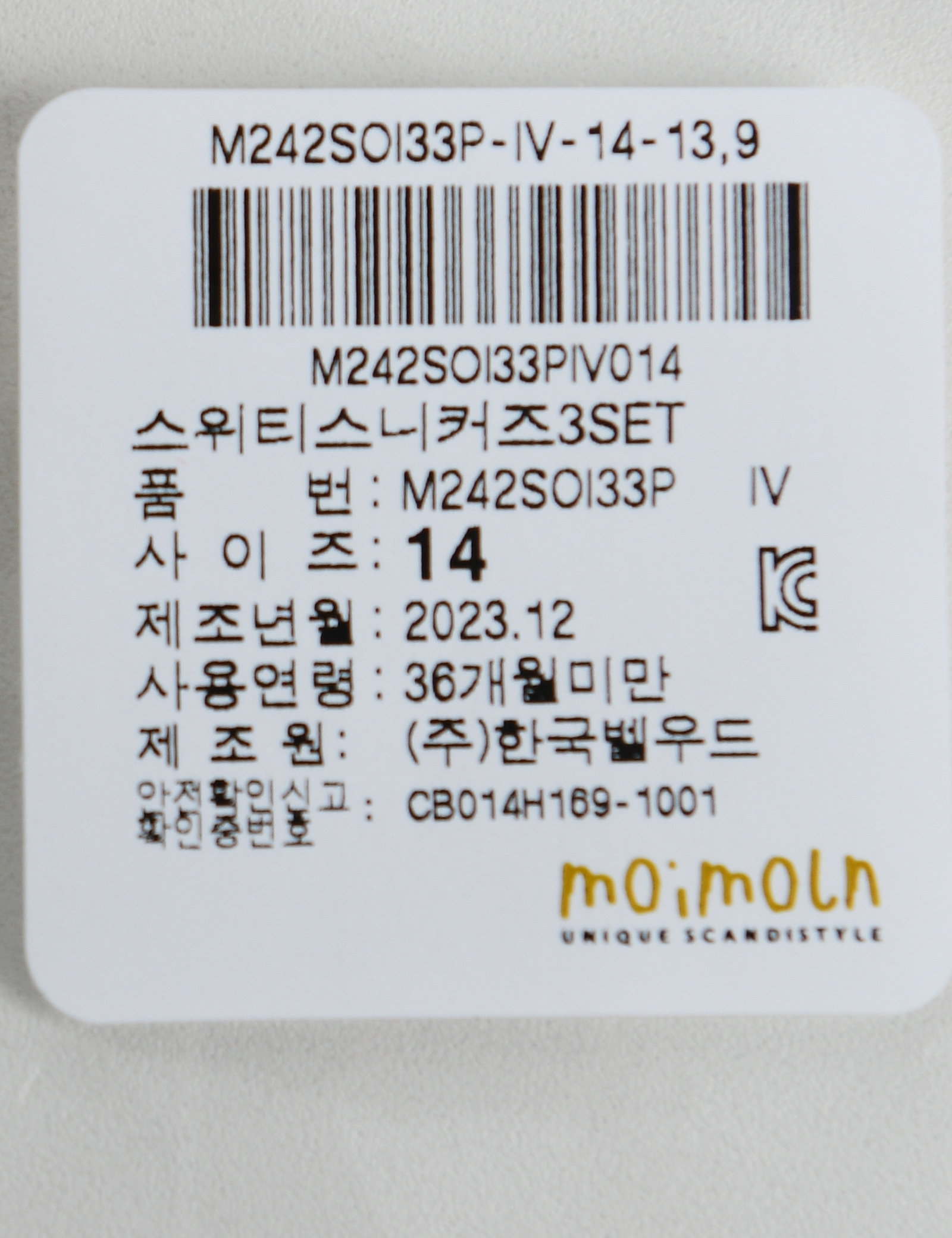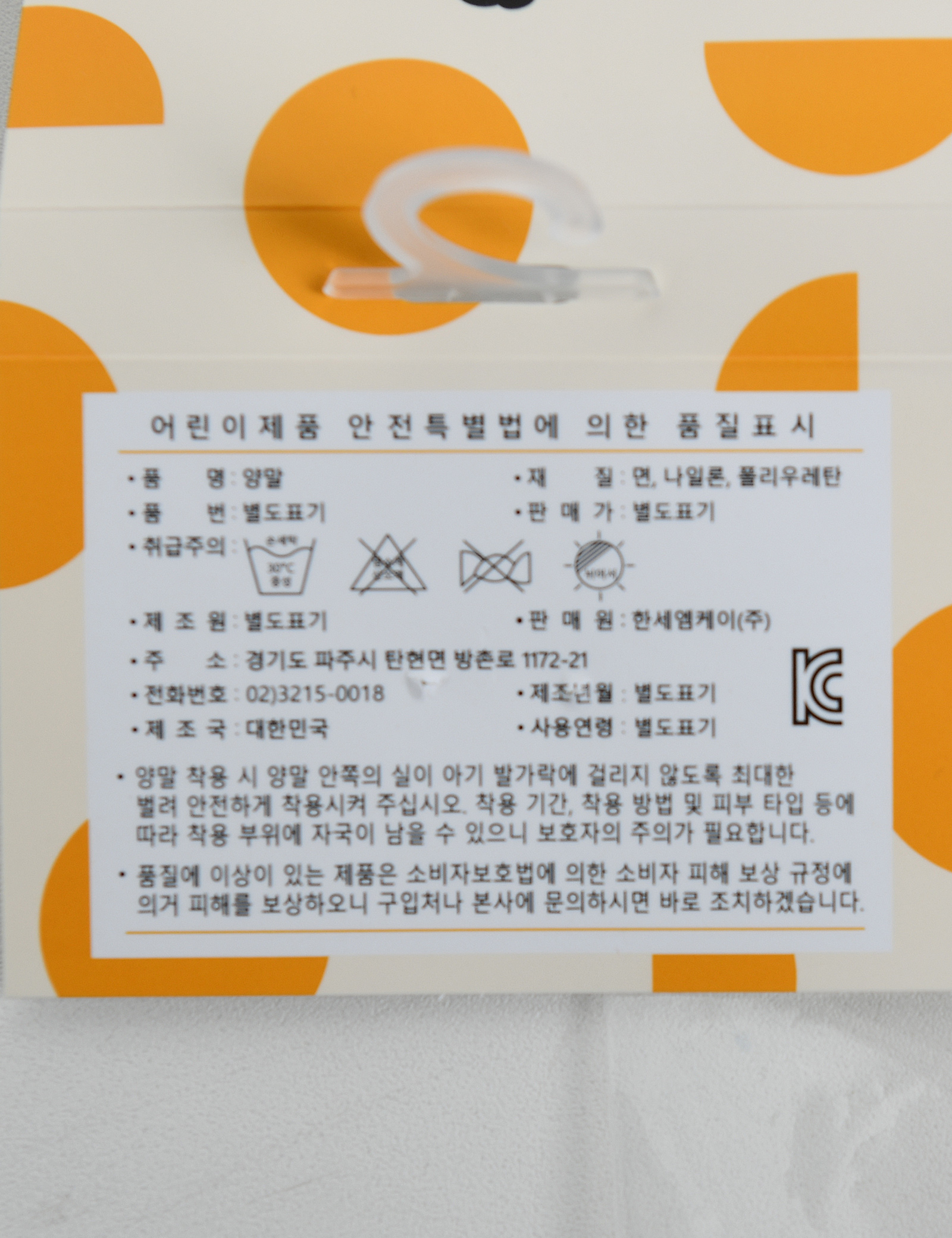 | 제조국 | 한세엠케이㈜ |