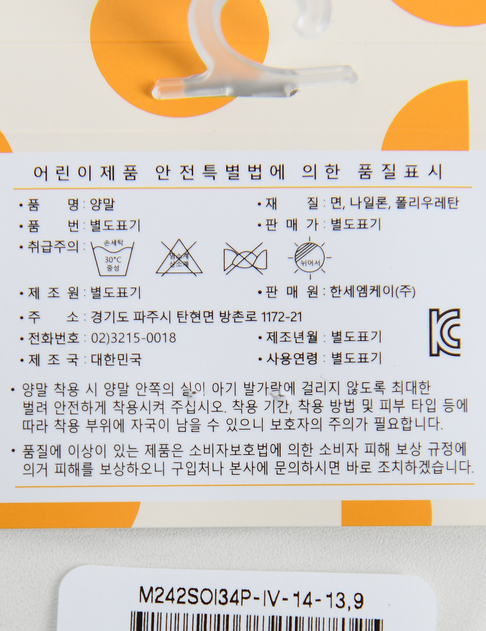 | 제조국 | 한세엠케이㈜ |