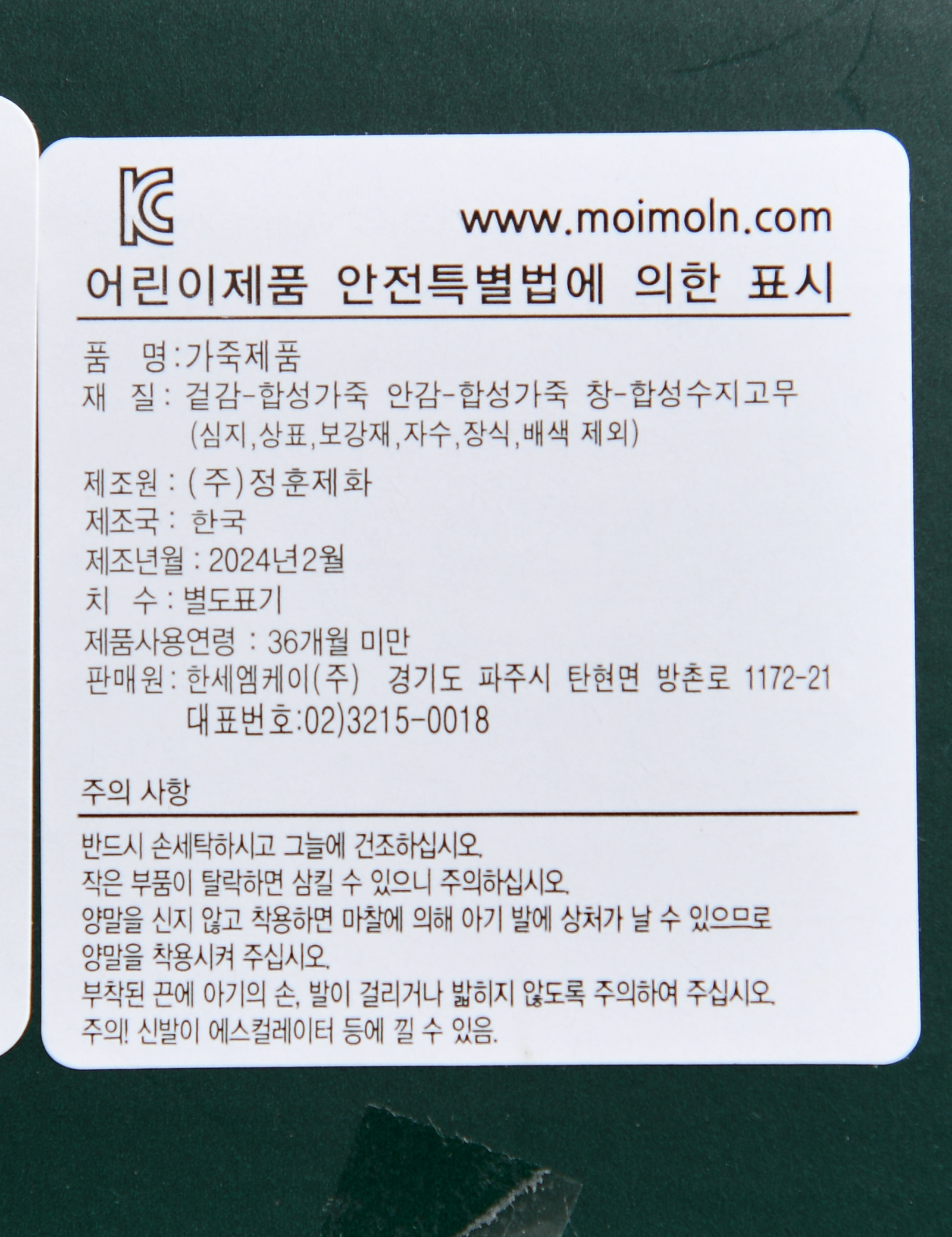 브랜드 홈 바로가기| 제품소재 | (겉감/안감)합성가죽(창)합성수지고무 |