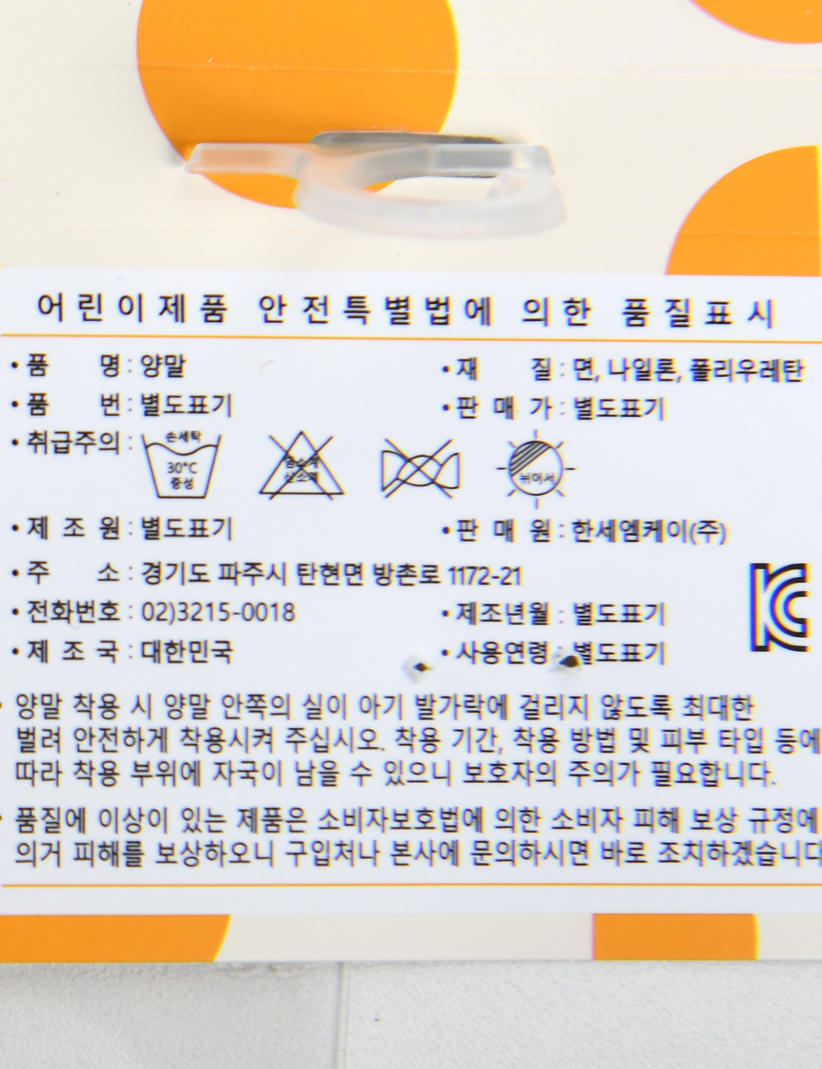 품명 및 모델명 (겉감)면,나일론,폴리우레탄