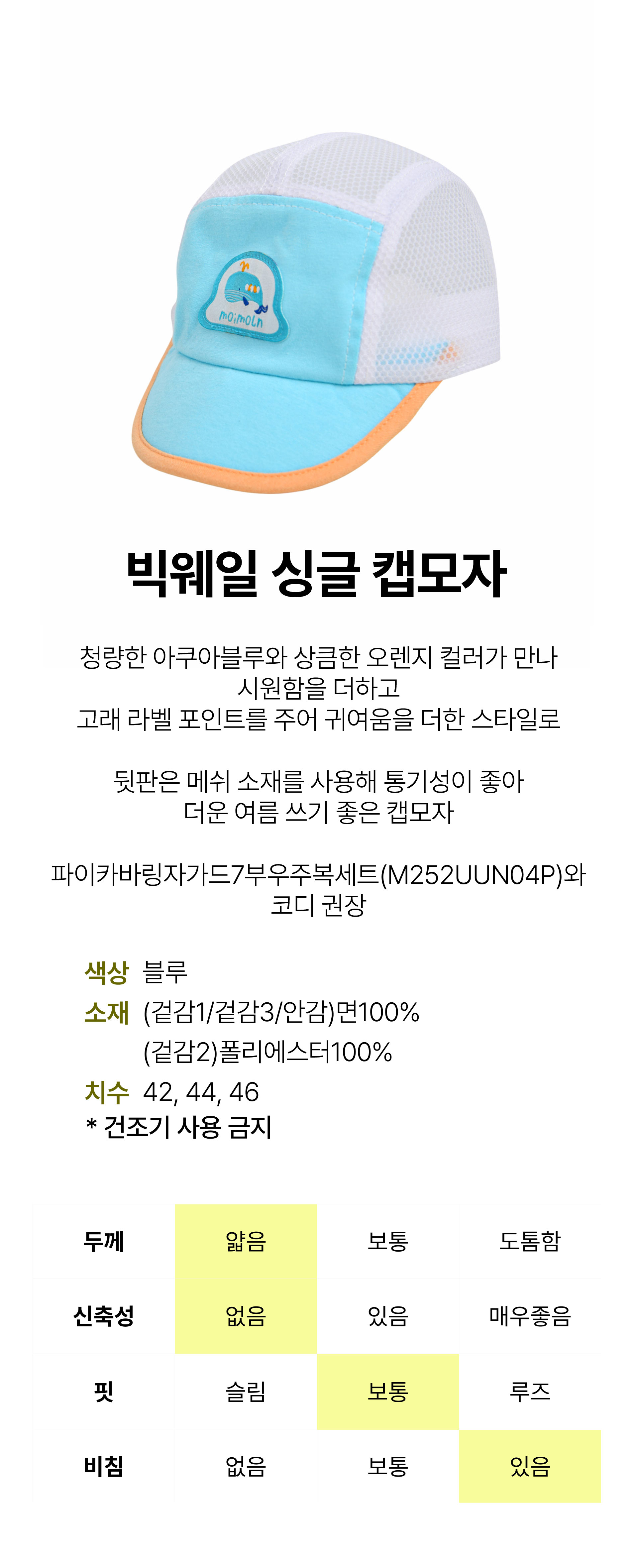 | 상품명 | [모이몰른] 빅웨일싱글캡모자 [여름] |