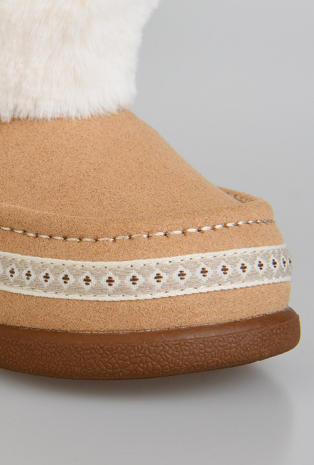 따뜻한 스웨이드 소재의어그부츠형 멜로디화로,발목단엔 풍성한 열풍 퍼가 배색되고앞코에는 에스닉한 무드의 테이프가장식되어 유니크한 디자인이 특징인겨울 부츠 멜로디화.부츠 안쪽엔 벨보아 안감과라이렉스 깔창으로보온성에도 신경쓴 아이템* 소재 특성상 열에 약하므로뜨거운 물과 건조기 사용을 피하고,가벼운 오염은 부분세탁 권장