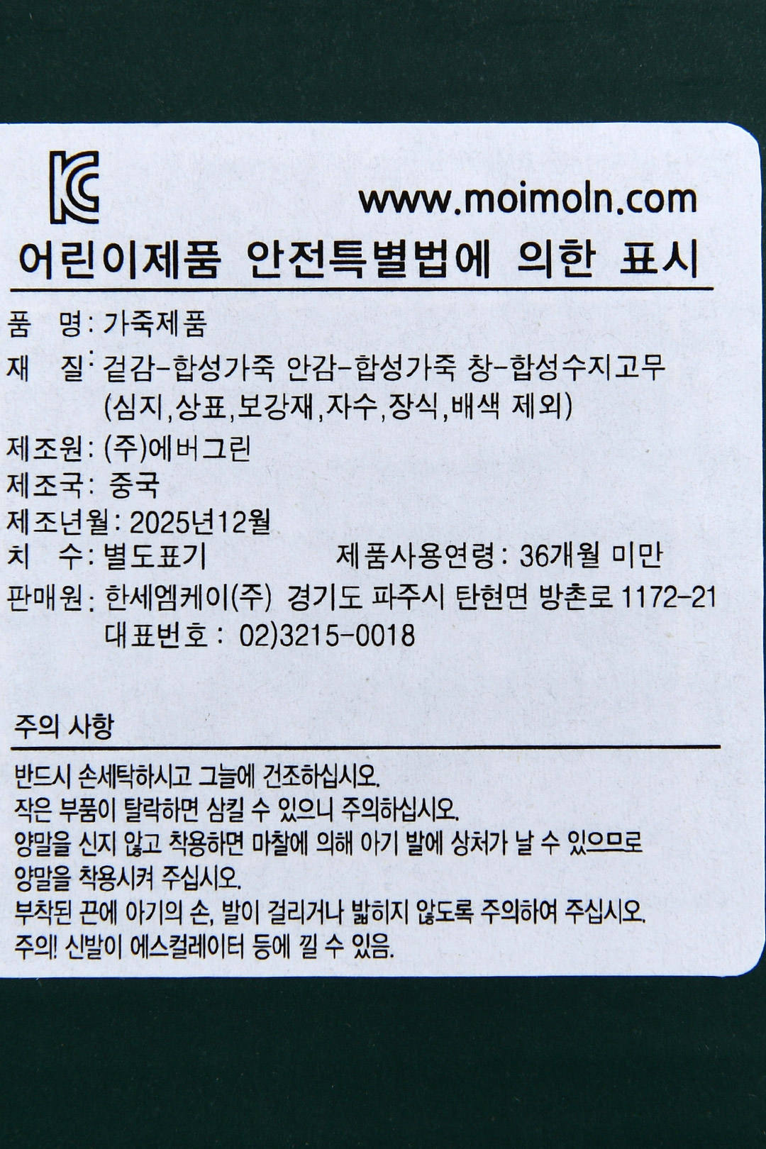 브랜드 홈 바로가기| 제품소재 | (겉감/안감)합성가죽(창)합성수지고무 |