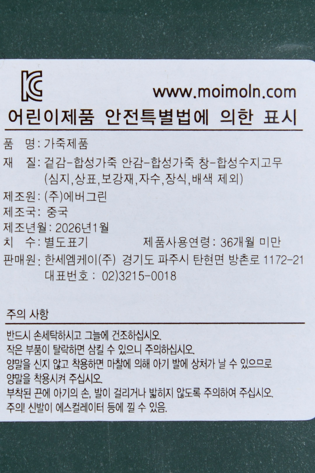 브랜드 홈 바로가기| 제품소재 | (겉감/안감)합성가죽(창)합성수지고무 |