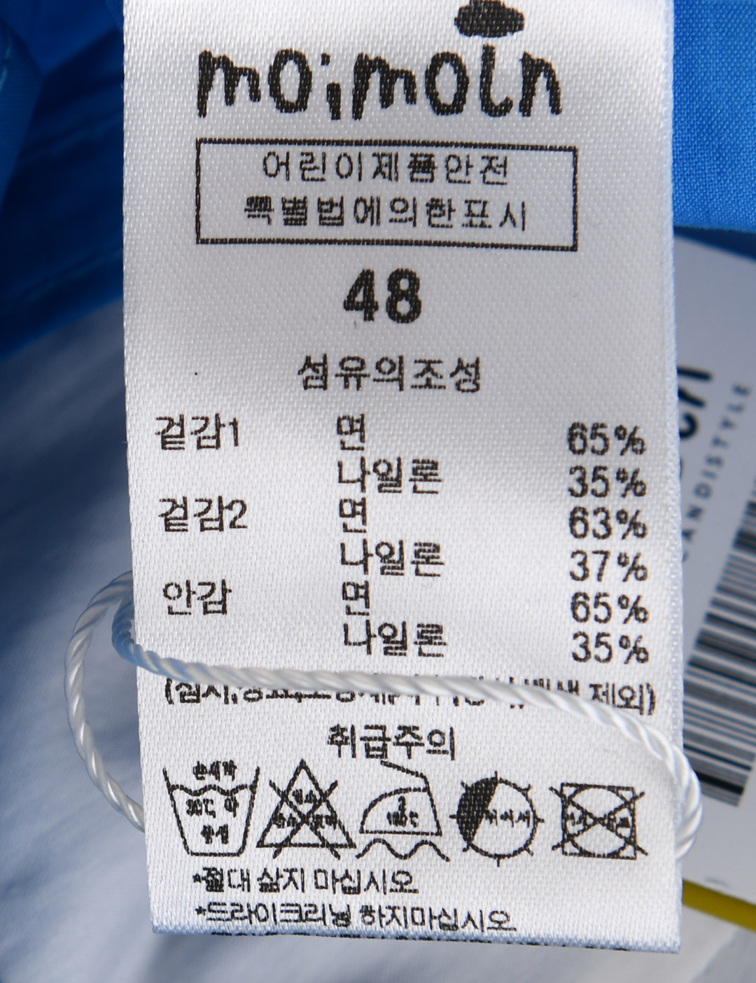 제품소재 (겉감1/겉감2/안감))면65%,나일론35%