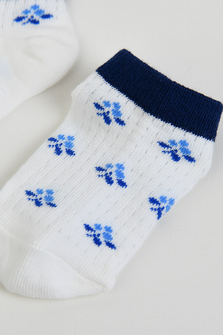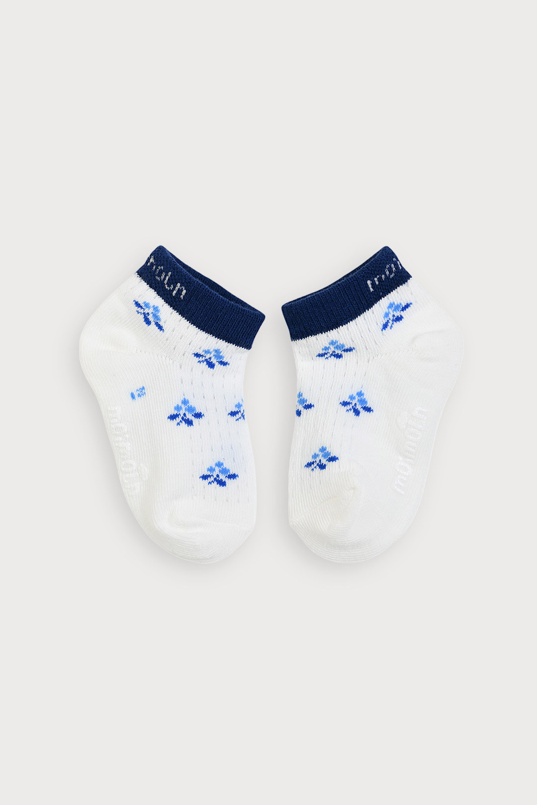 블루 컬러의 열매 모티브와 시원한 매쉬 조직의 여름 스니커즈 양말