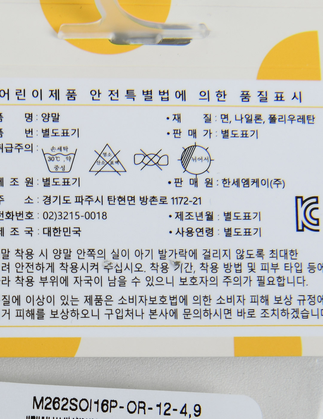 | 제조국 | 한세엠케이㈜ |