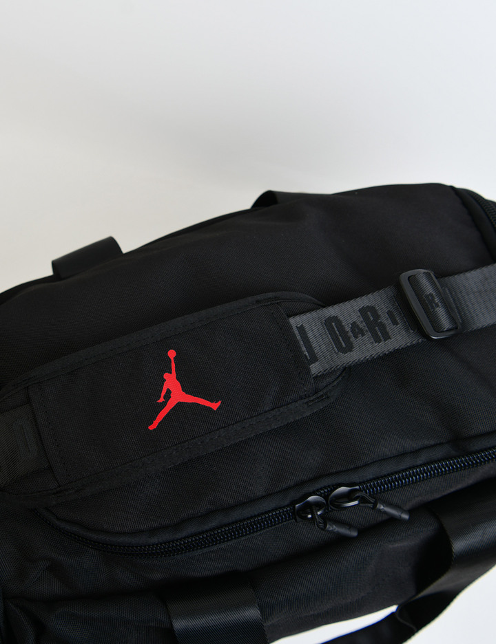 • 점프맨 로고와 조던 레터링으로 디자인 포인트를 준 더플백