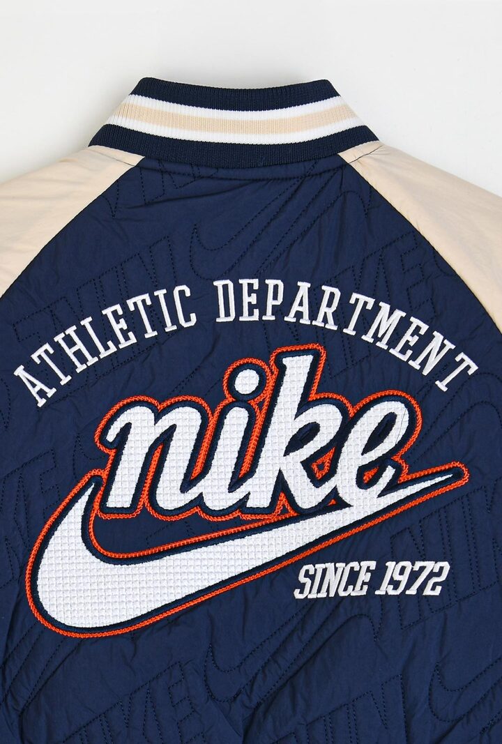 • 몸판 부분에 볼드한 NIKE 로고가 퀼팅으로 작업되어 돋보이는 스타일