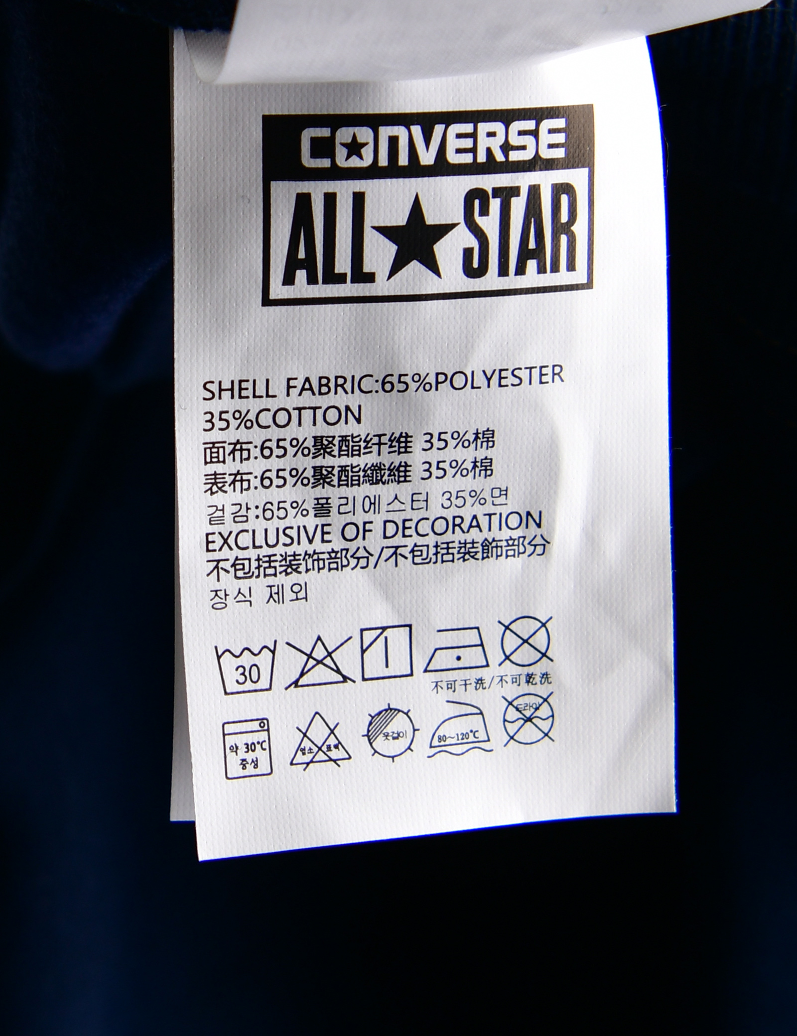 제품소재 (겉감)폴리에스터65%,면35%