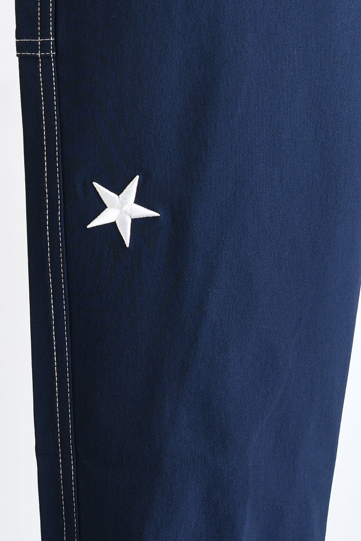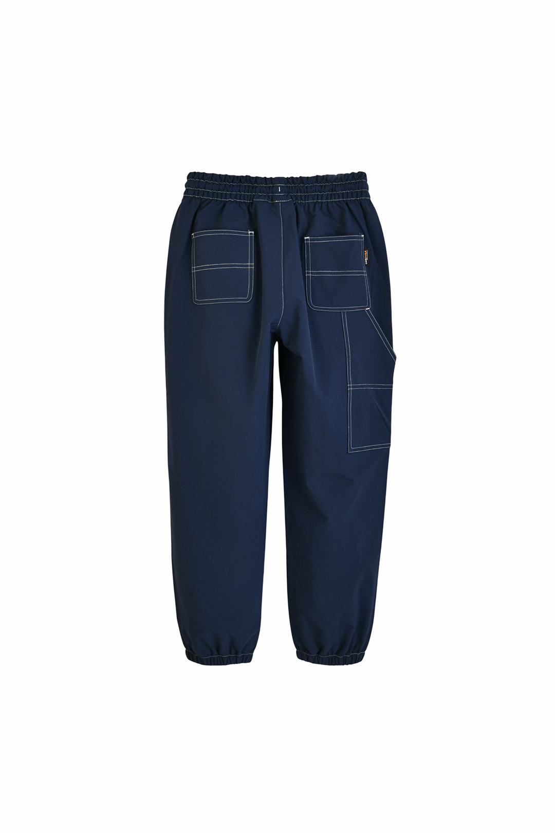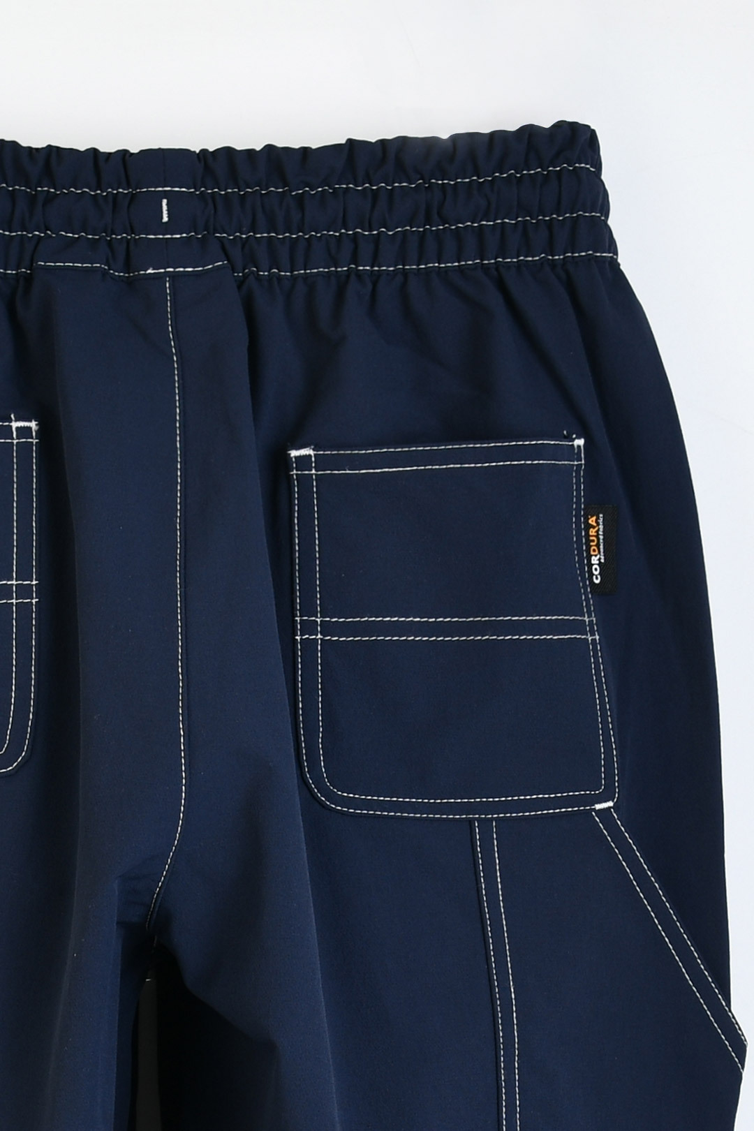 가벼운 나일론 혼방 소재로 제작된 팬츠 전체 화이트 스티치로 디자인 포인트 강화 뒷면 카펜터 디테일로 트렌디한 분위기 캐주얼 스타일에 활용하기 좋은 아이템