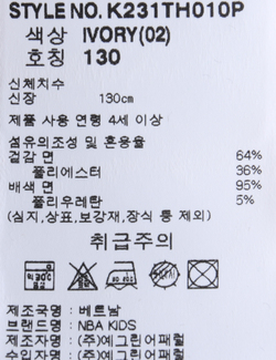 제품소재 [겉감]면64% 폴리에스터36% [배색]면95% 폴리우레탄5%