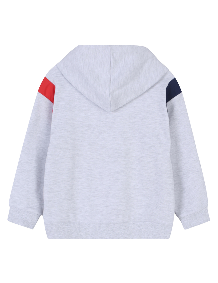 -트렌디한 컬러감의 화섬 소재 배색과 캥거루 포켓 디자인이 특징