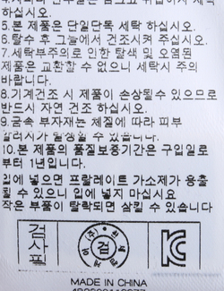 | 세탁방법 및 취급시 주의사항 | 중성세제로 단 시간내에 세탁하십시오.(케어라벨참고) |