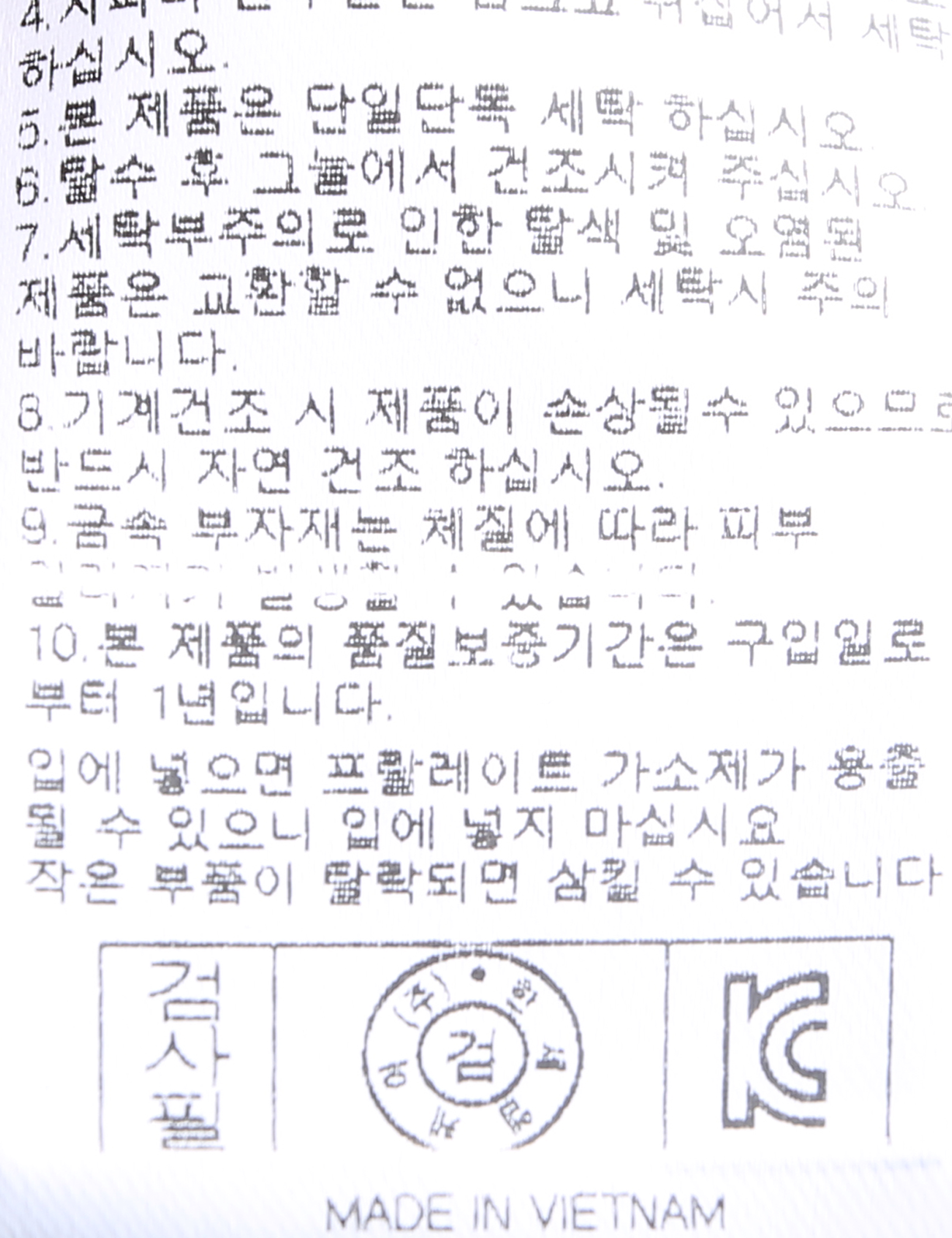 | 세탁방법 및 취급시 주의사항 | 중성세제로 단 시간내에 세탁하십시오.(케어라벨참고) |