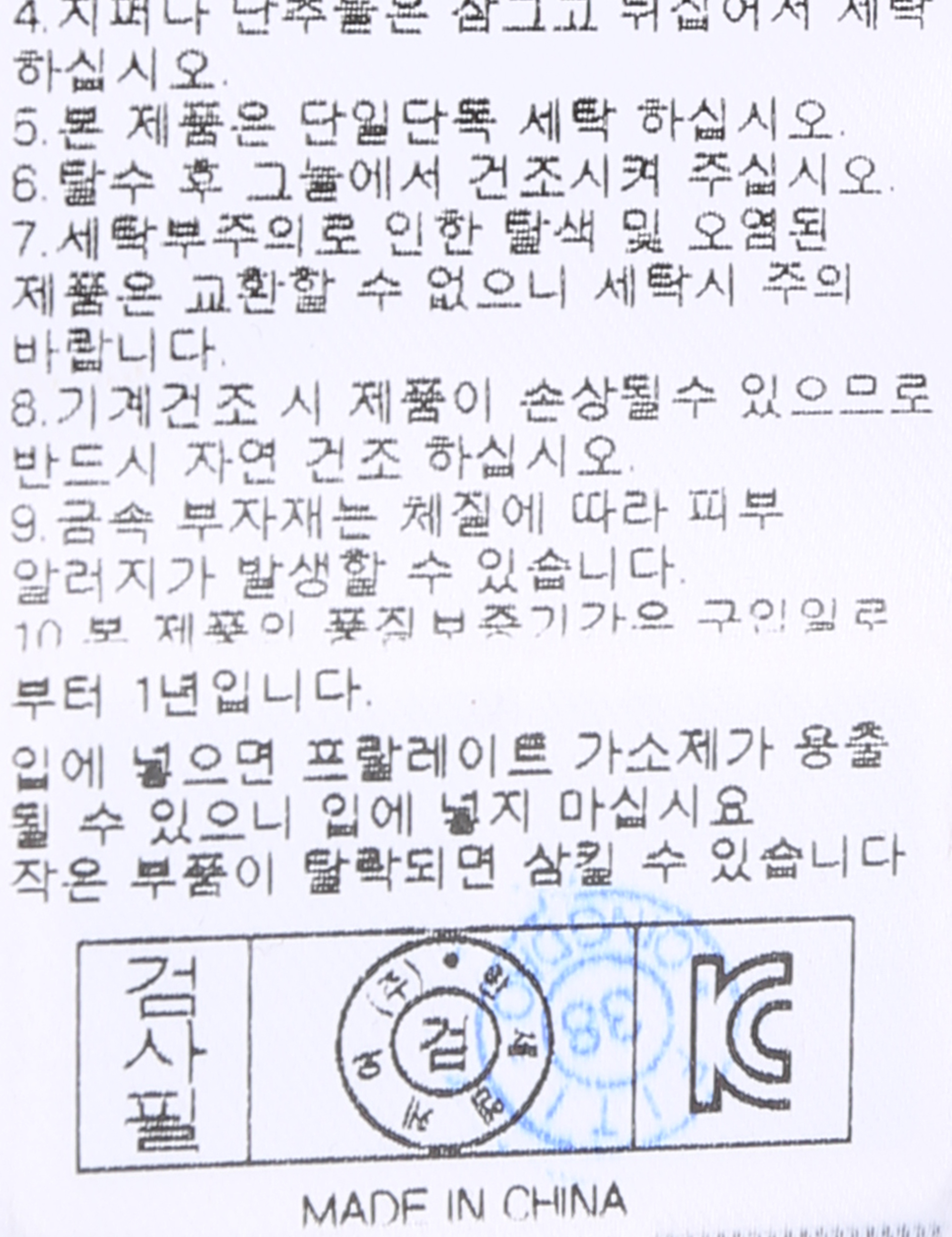 | 세탁방법 및 취급시 주의사항 | 중성세제로 단 시간내에 세탁하십시오.(케어라벨참고) |