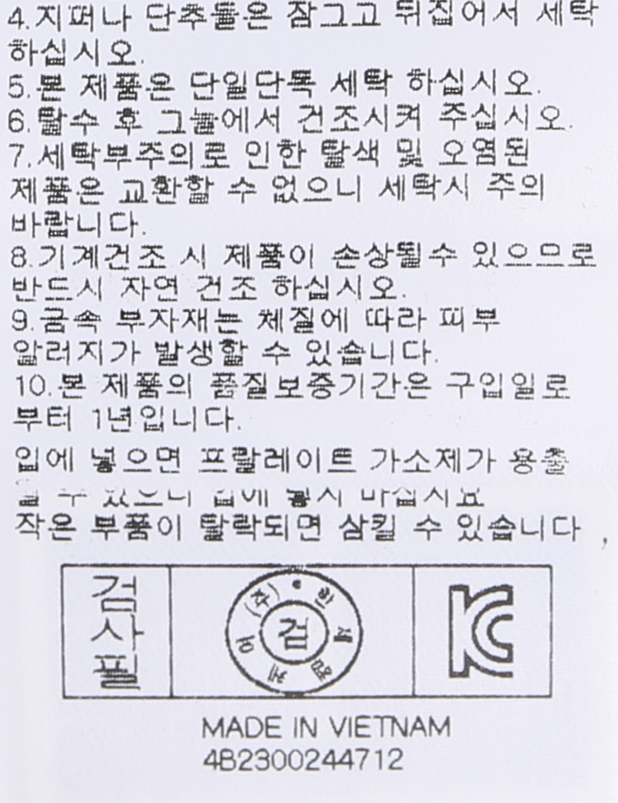 세탁방법 및 취급시 주의사항 중성세제로 단 시간내에 세탁하십시오.(케어라벨참고)