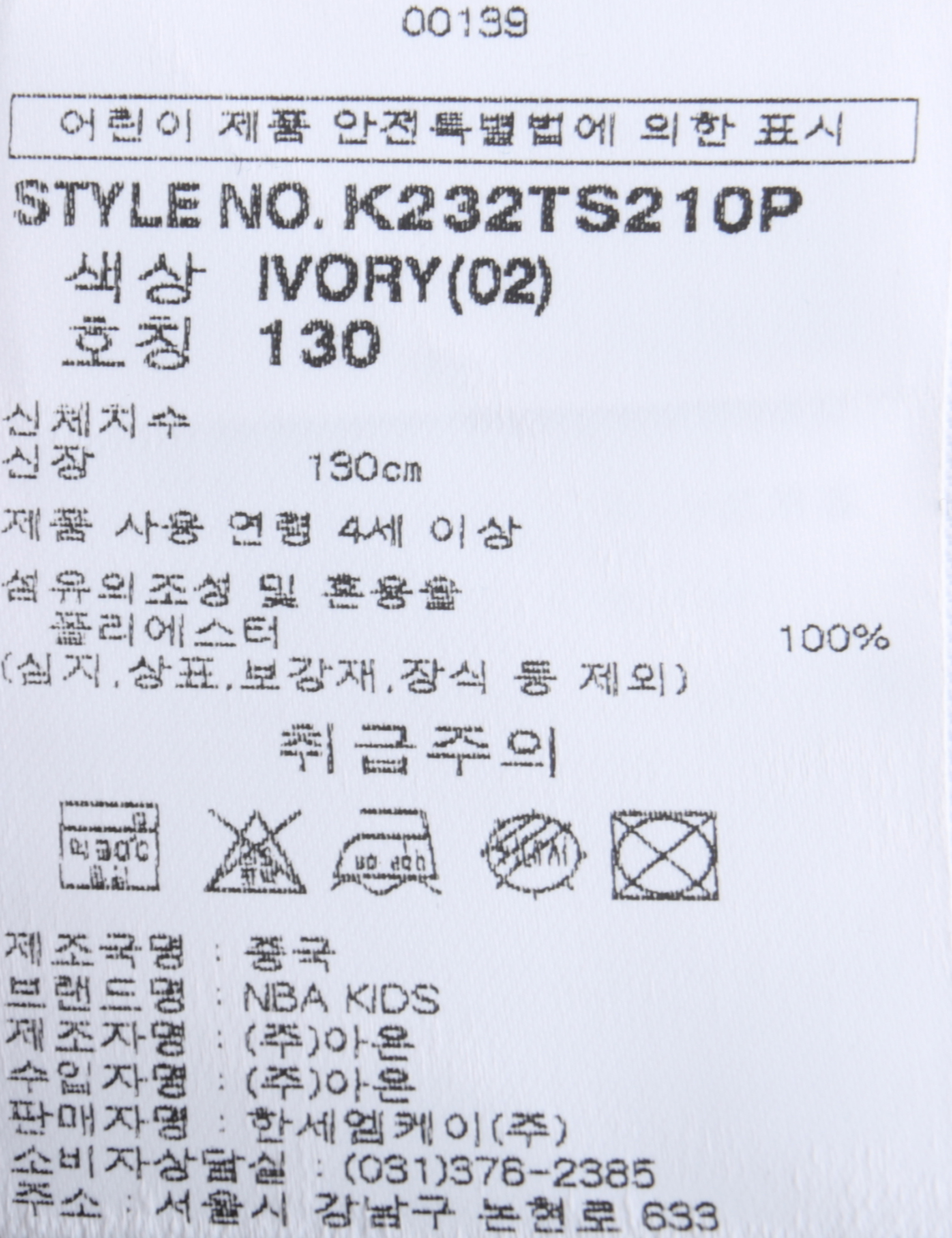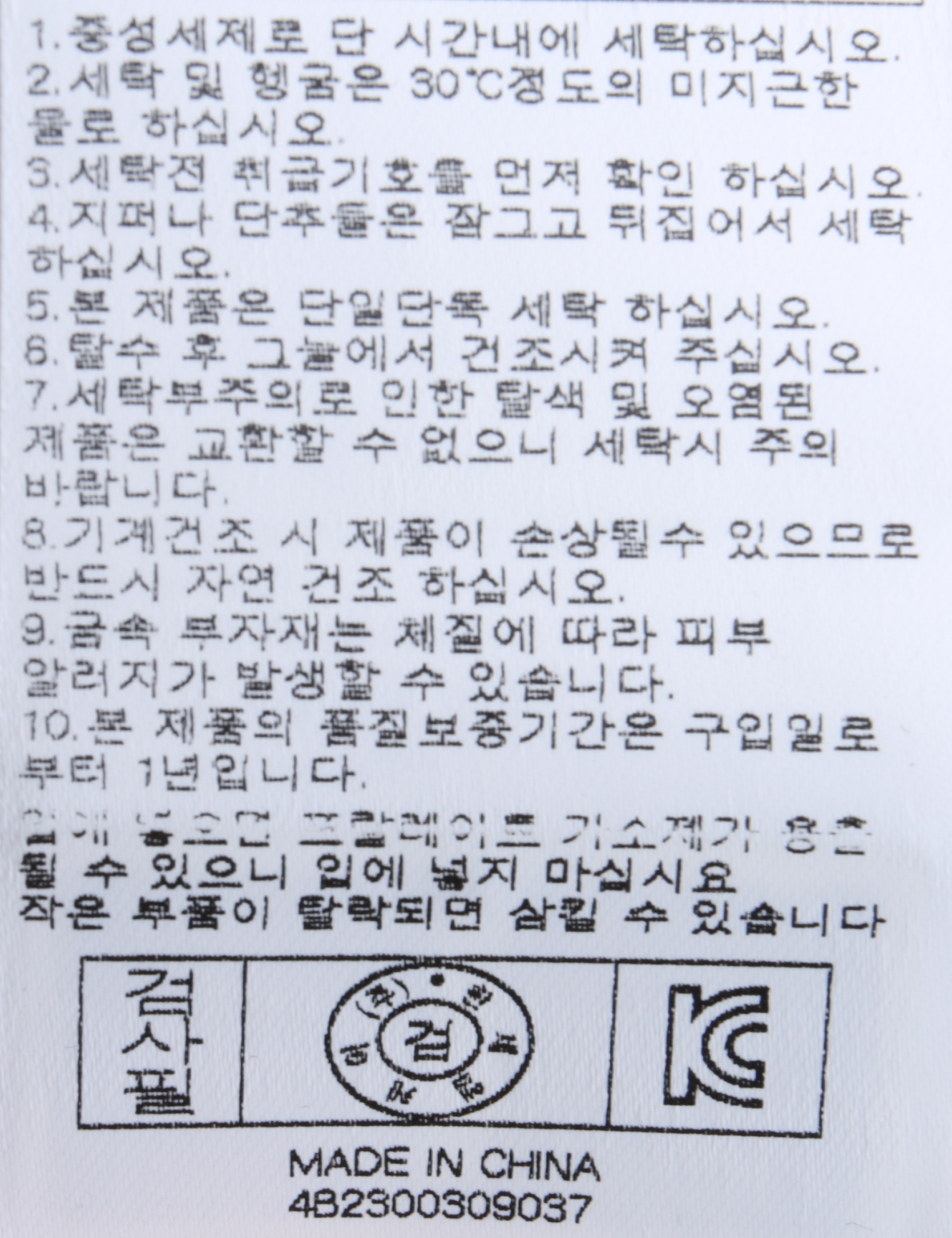 | 세탁방법 및 취급시 주의사항 | 중성세제로 단 시간내에 세탁하십시오.(케어라벨참고) |
