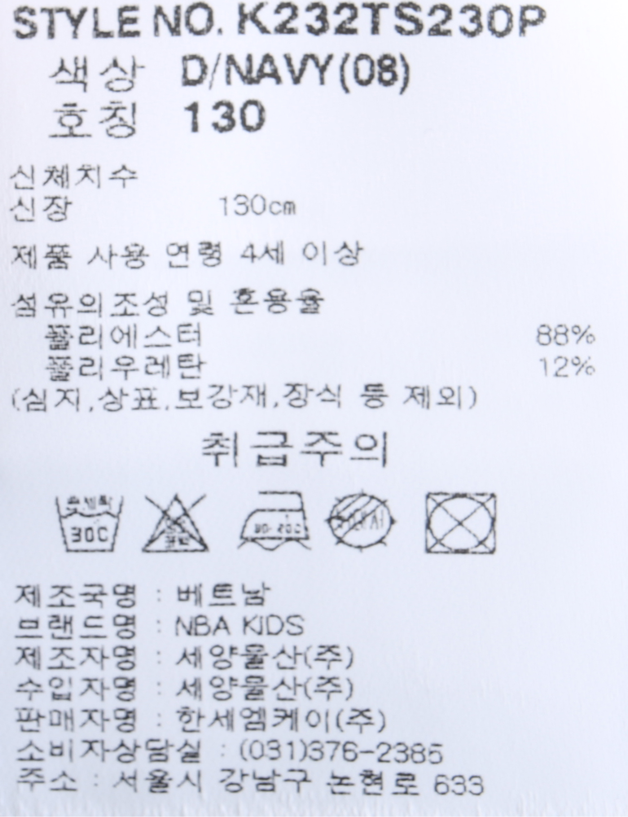 | 상품명 | NBA 폴리스판 민소매 티셔츠(K232TP130P SET)(K232TS230P) |