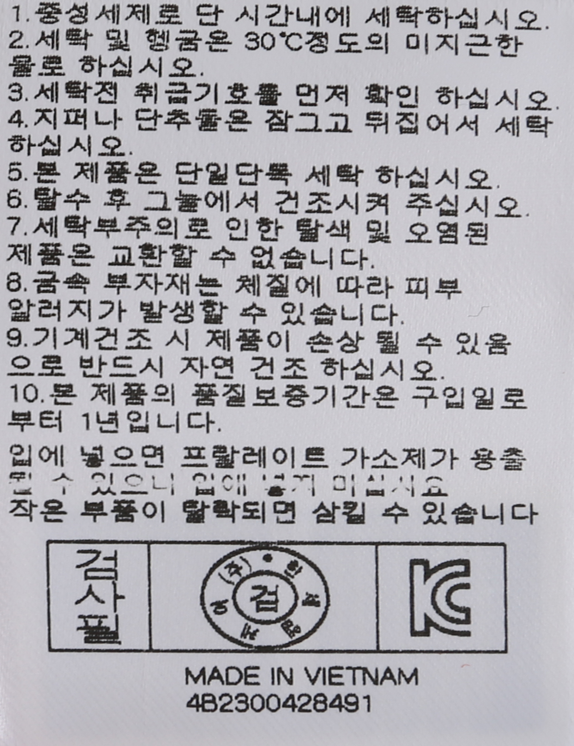 세탁방법 및 취급시 주의사항 본 제품은 손세탁 하십시오.(케어라벨참고)