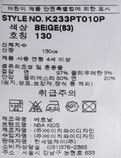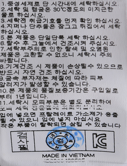 | 세탁방법 및 취급시 주의사항 | 중성세제로 단 시간내에 세탁하십시오.(케어라벨참고) |