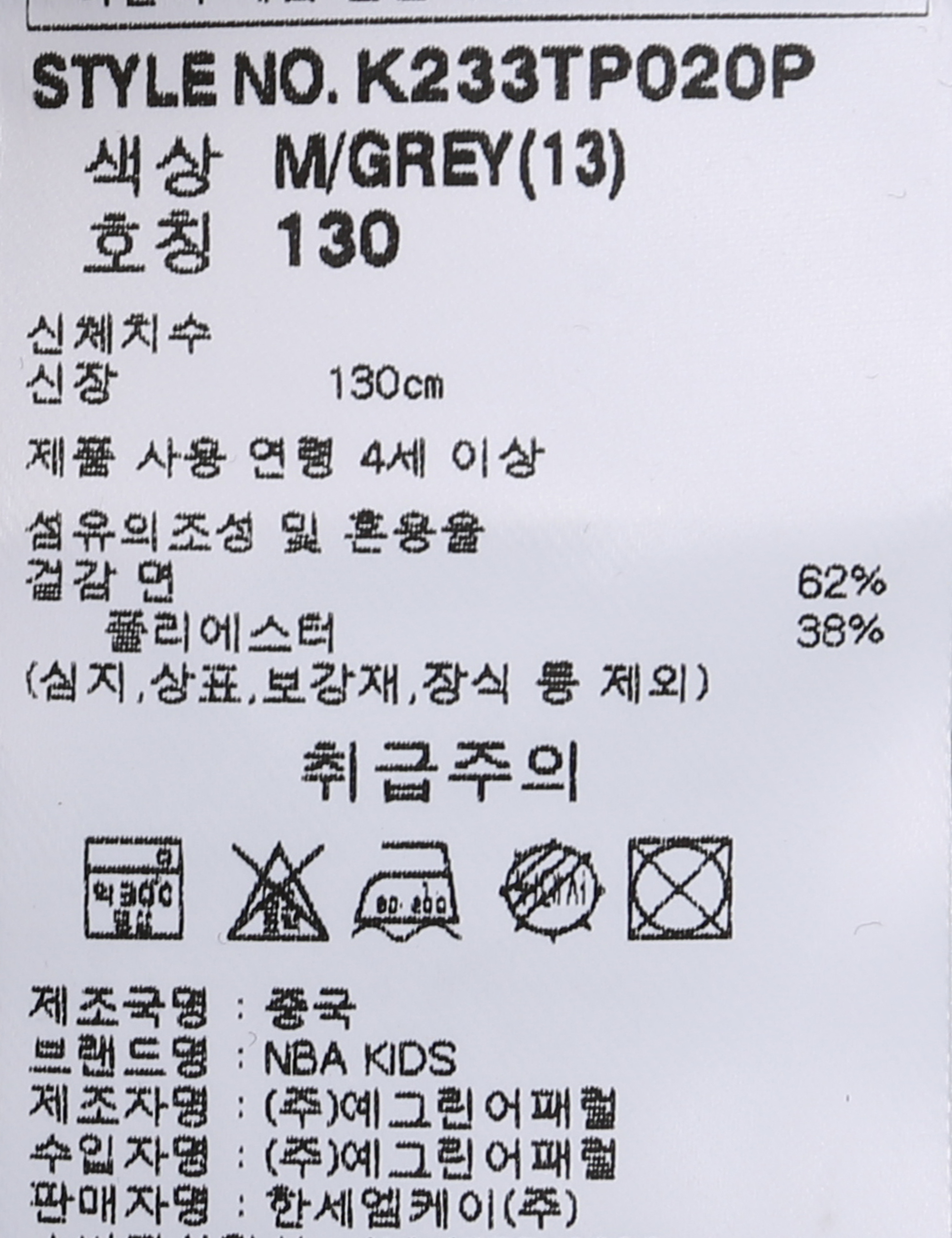 | 상품명 | NBA 로고와펜 니트 조거팬츠(K233TP020P) |