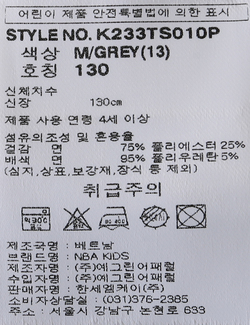 | 세탁방법 및 취급시 주의사항 | 중성세제로 단 시간내에 세탁하십시오.(케어라벨참고) |