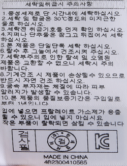 | 세탁방법 및 취급시 주의사항 | 중성세제로 단 시간내에 세탁하십시오.(케어라벨참고) |