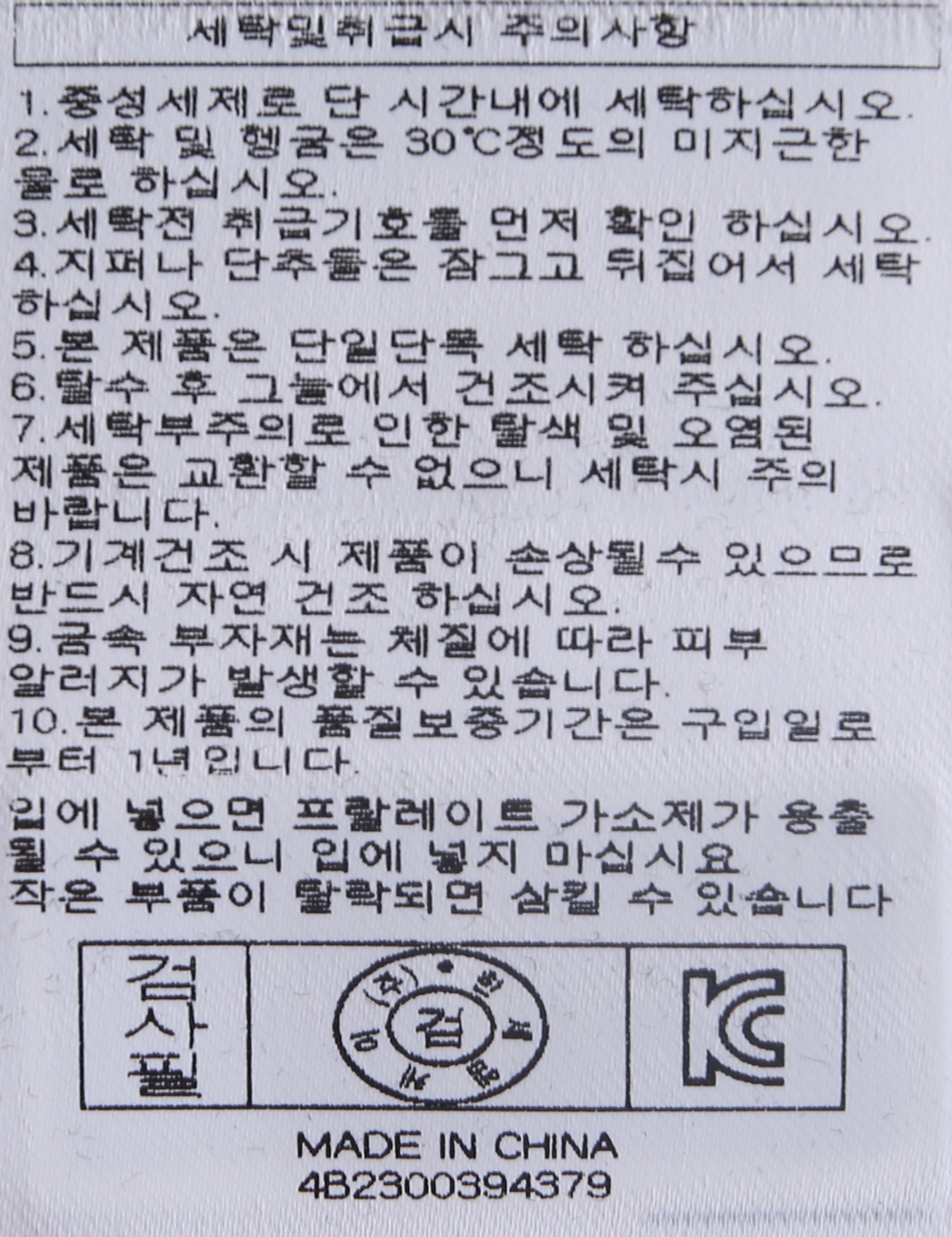 세탁방법 및 취급시 주의사항 중성세제로 단 시간내에 세탁하십시오.(케어라벨참고)