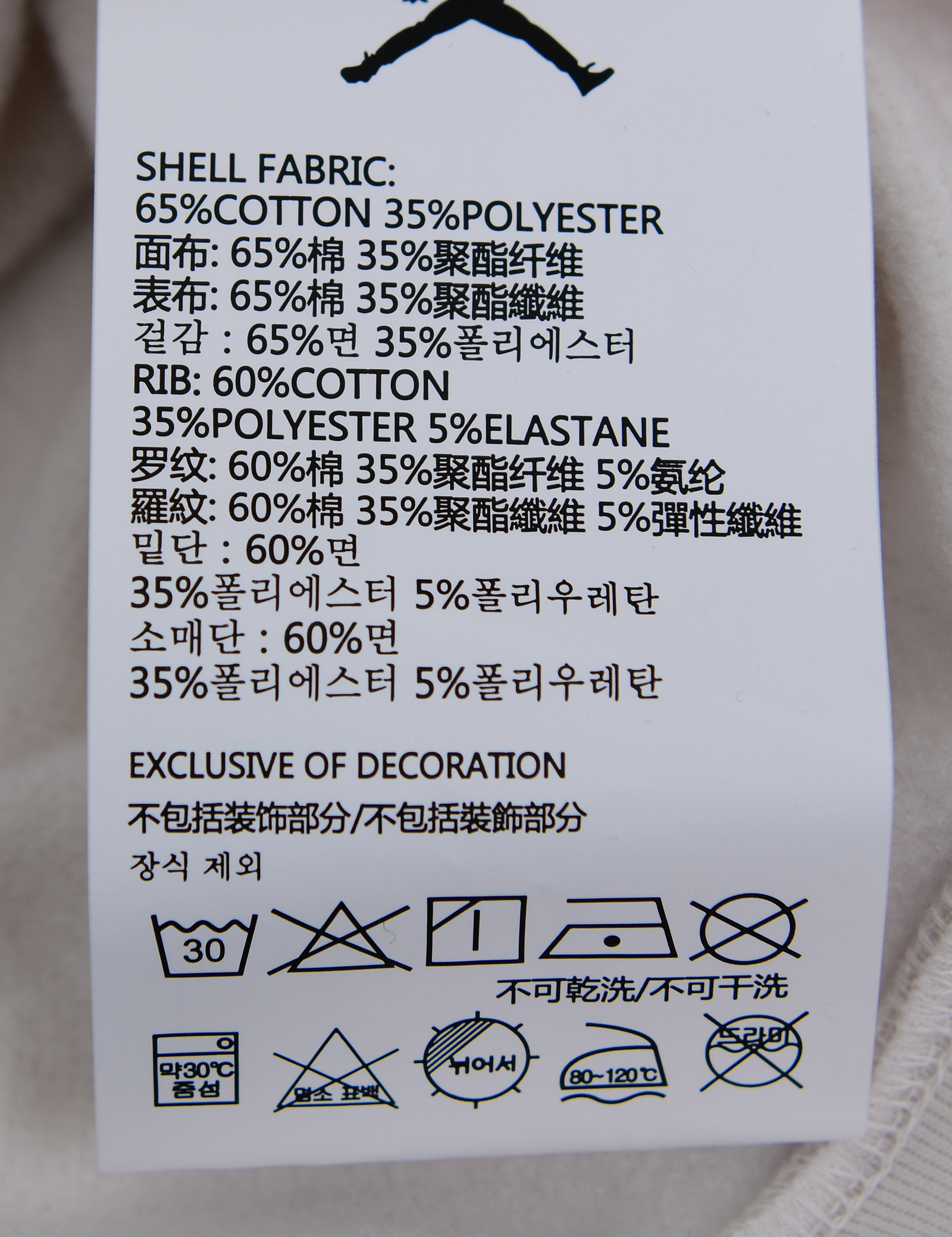 제품소재 (겉감)면65%,폴리에스터35%,