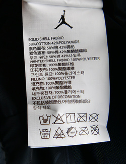 제품소재 (무지원단)면58%,나일론42%(프린트원단/내부충전재)폴리에스터100%