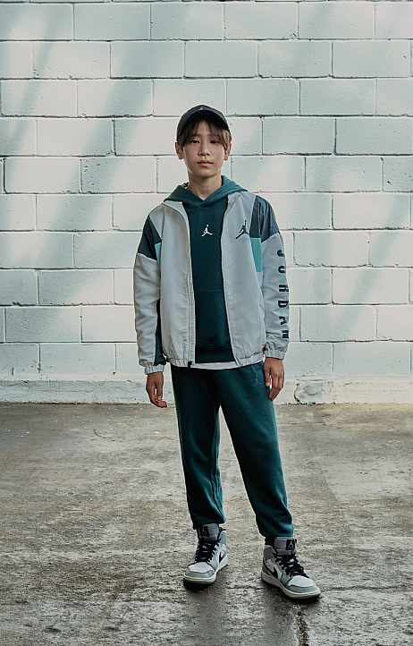 • 컬러블럭 디자인으로, 가슴쪽의 로고와 소매의 조던 레터링 포인트 가 있는 제품