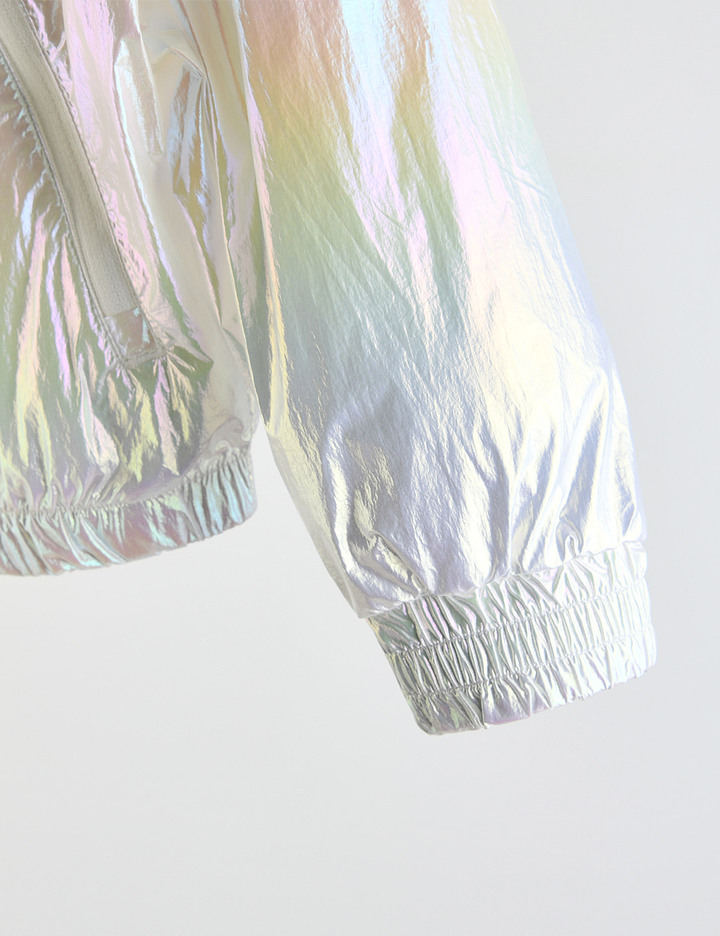 빛에 따라 분위기가 달라 보이는 글로시 홑겹 윈드러너 자켓