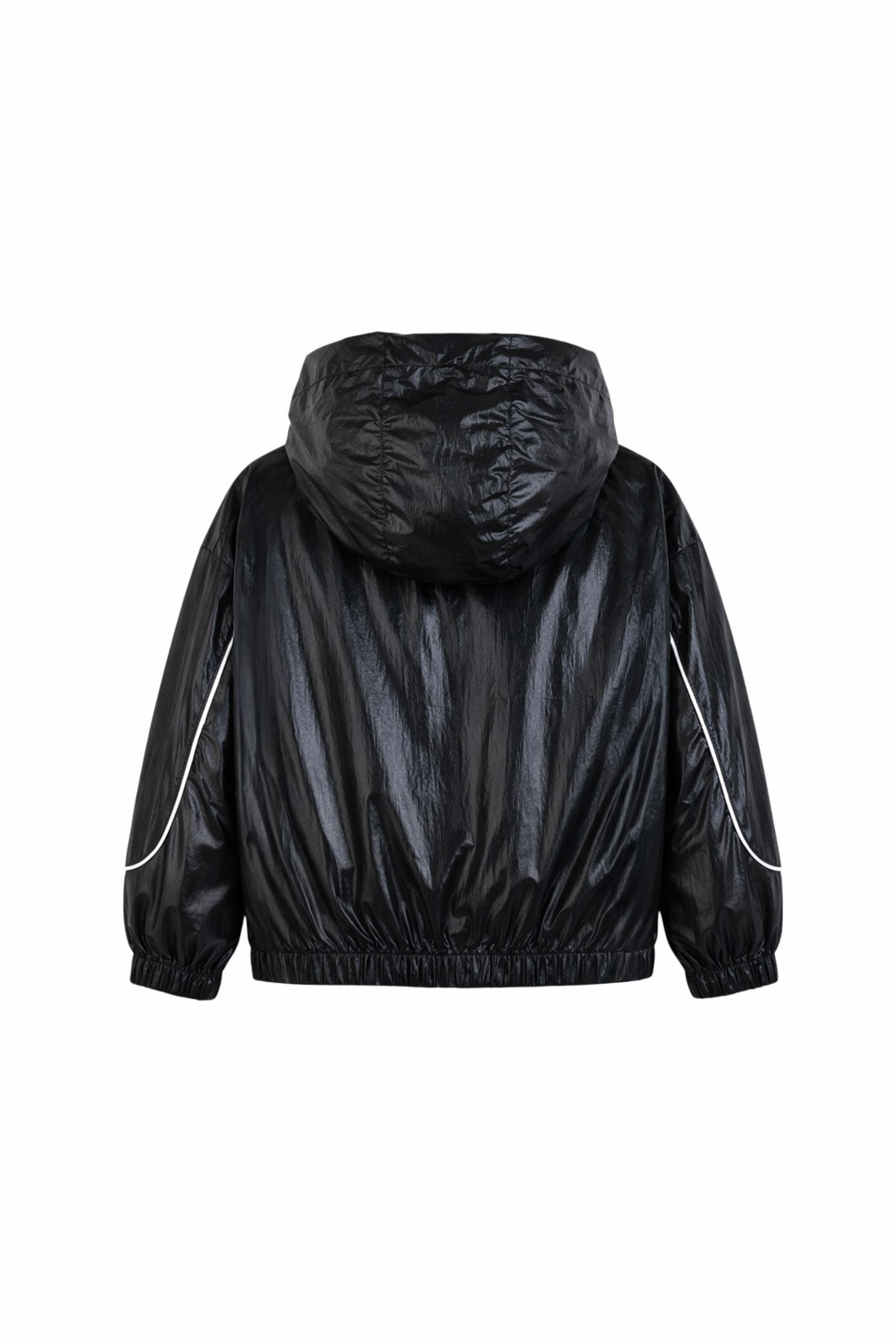 파이핑 디테일로 입체감을 더한 글로시 윈드러너
