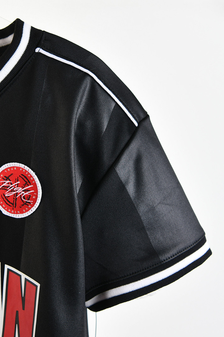 폴리 소재로 가볍게 입기 좋은 스포츠 저지 반팔티 브이넥과 소매 배색 라인이 또렷한 유니폼 무드를 완성함 전면 아치 로고와 와펜 패치가 시선을 끄는 포인트로 자리함 은은한 패널 변화를 넣어 단색보다 입체적인 인상이 살아남