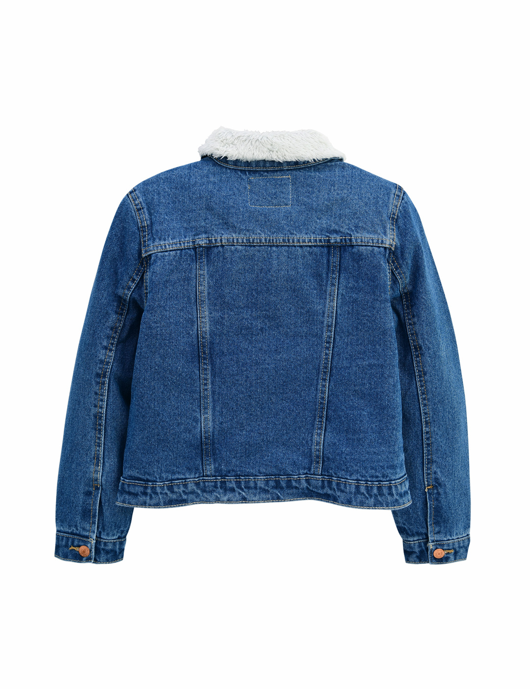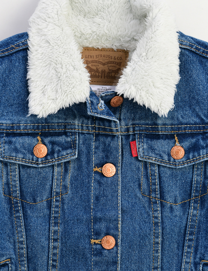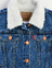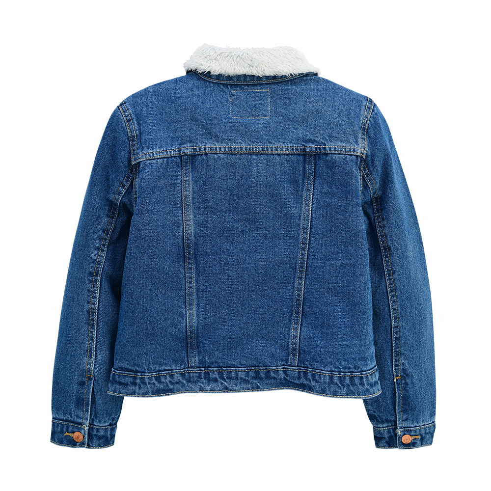 몸판과 카라에 셰르파 안감이 들어간 기본 여아 데님 트러커