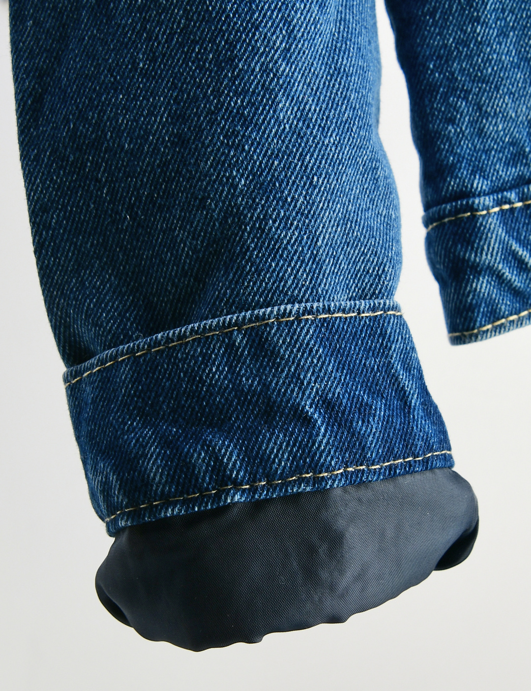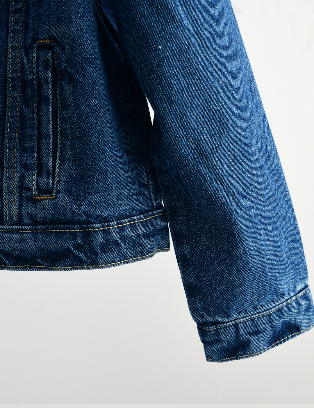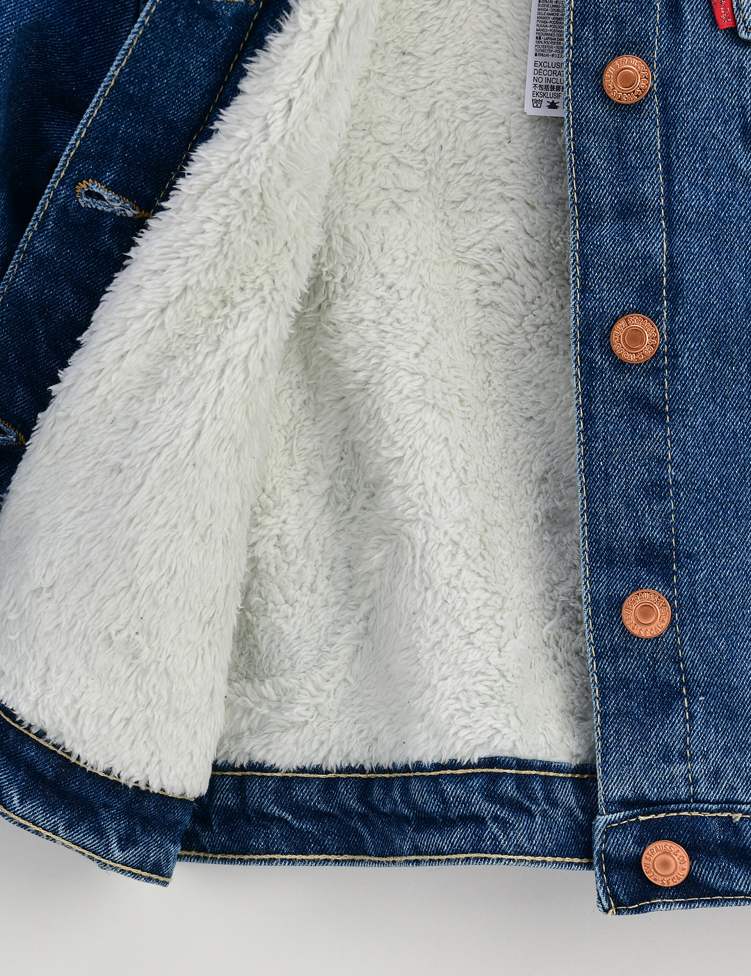 몸판과 카라에 셰르파 안감이 들어간 기본 여아 데님 트러커