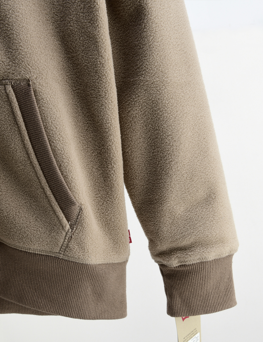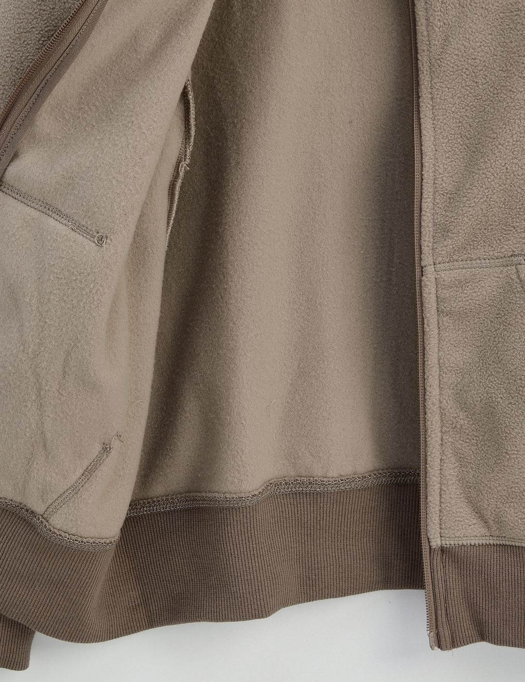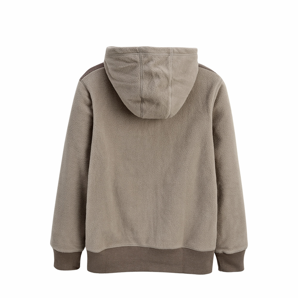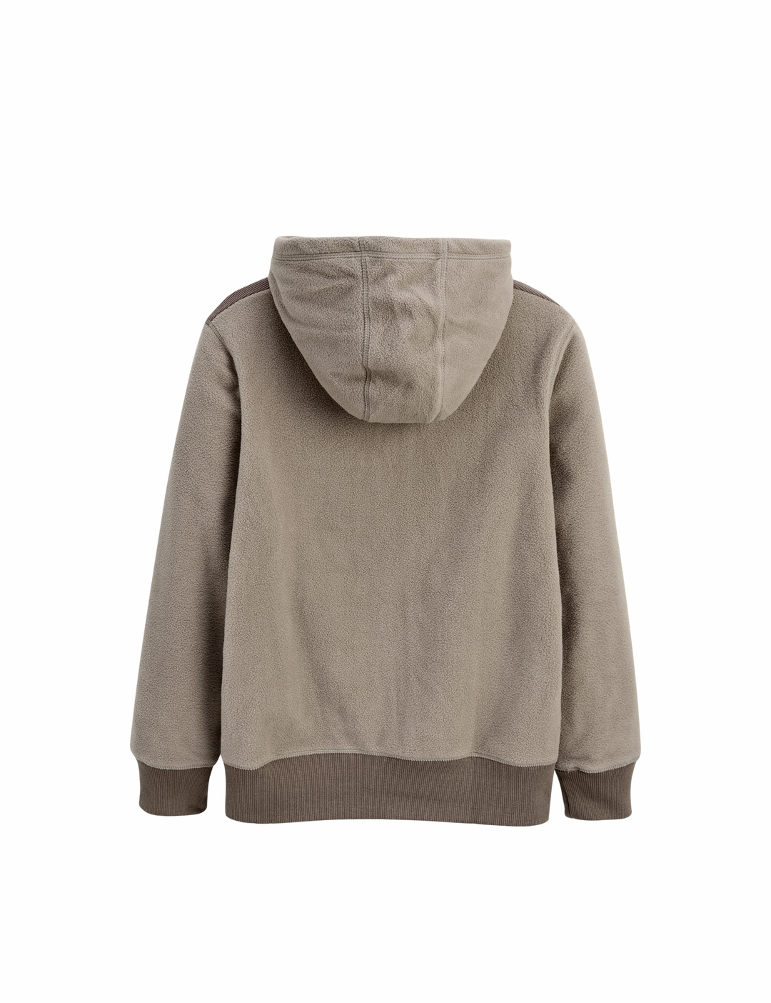 부드럽고 보온성 높은 플리스 소재에 어깨 부분에 텍스쳐가 있는 풀집 후디