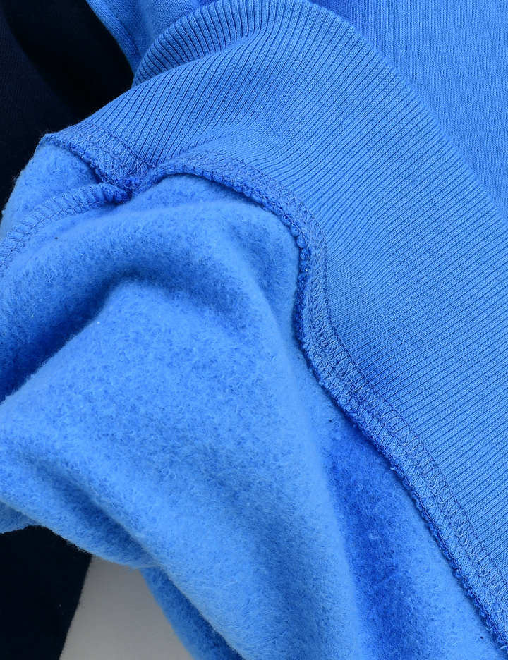 드롭 숄더 실루엣에 앞판 세로 로고가 포인트로 들어간 플리스 소재의 풀오버