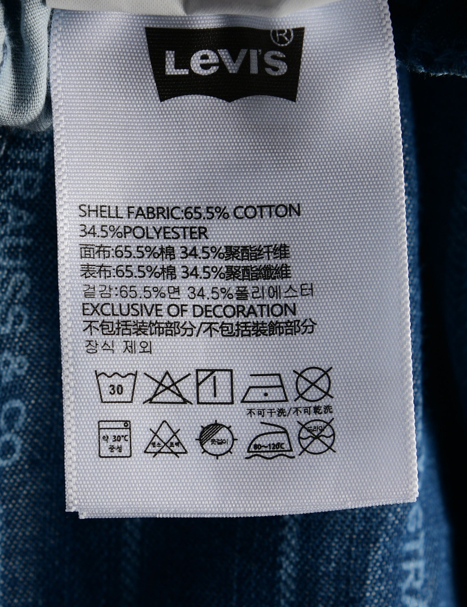 제품소재 (겉감)면65.5%,폴리에스터34.5%