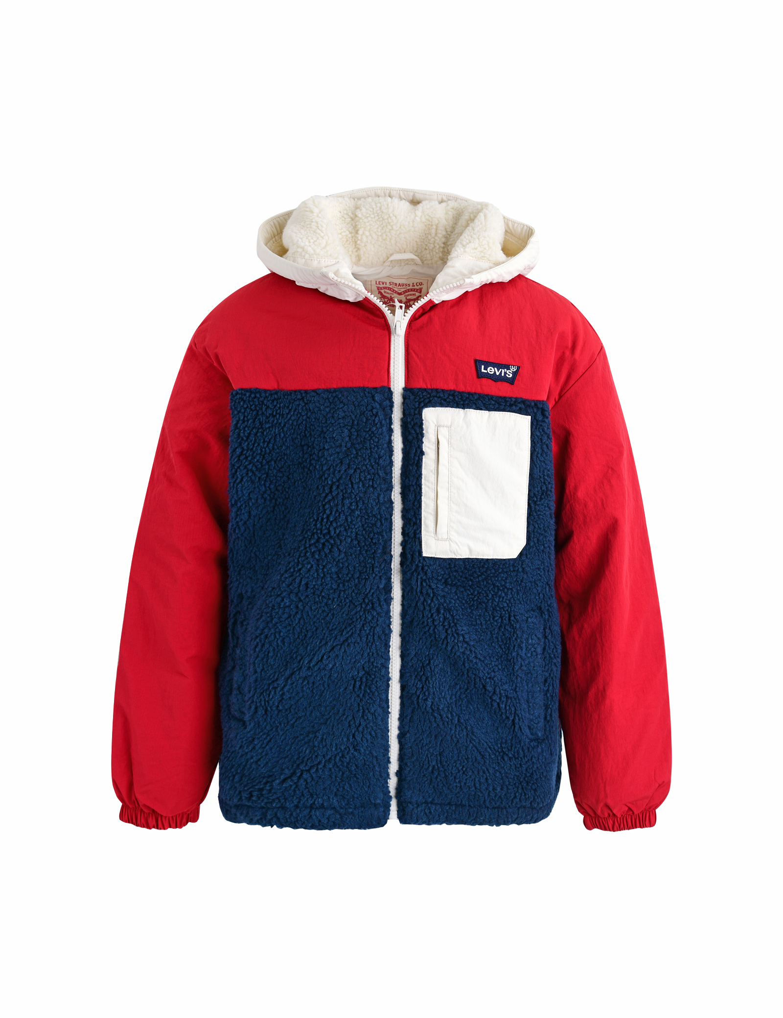 가슴포켓이 포인트로 들어가 있으며, 몸판과 안감에 부드러운 셰르파 소재를 사용한 보온성 높은 가벼운 패딩 풀집자켓