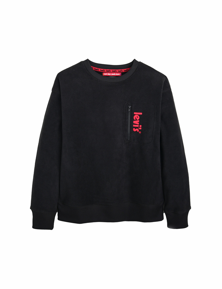 가슴에 로고와 포켓이 포인트로 들어가 있고, 몸판이 플리스소재로되어 보온성을 높인 크루넥 풀오버