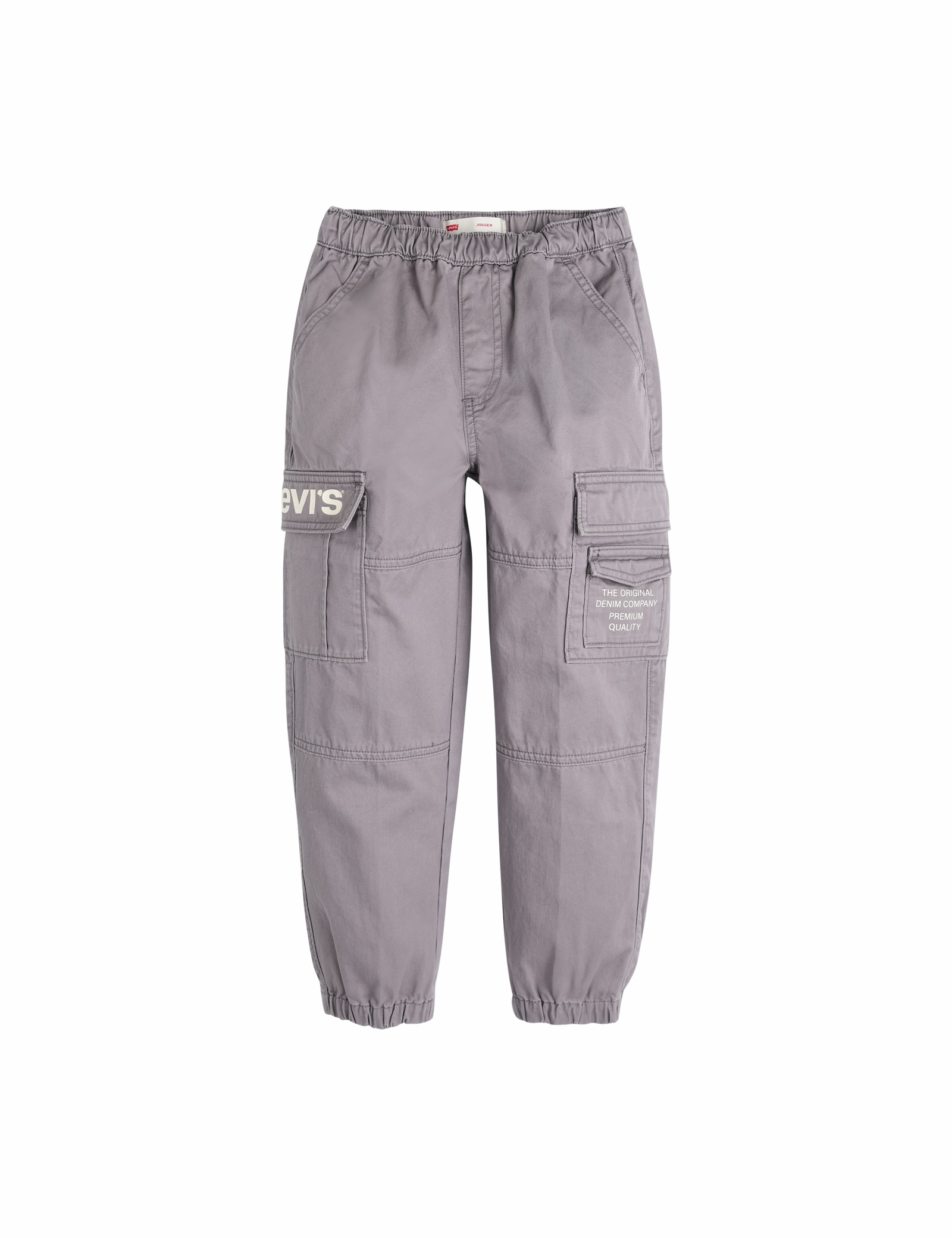 카고 포켓과 레터링 로고가 포인트로 들어가 있으며, 허리와 밑단이 밴드처리로 활동에 편한 루즈핏 우븐 풀온 조거팬츠