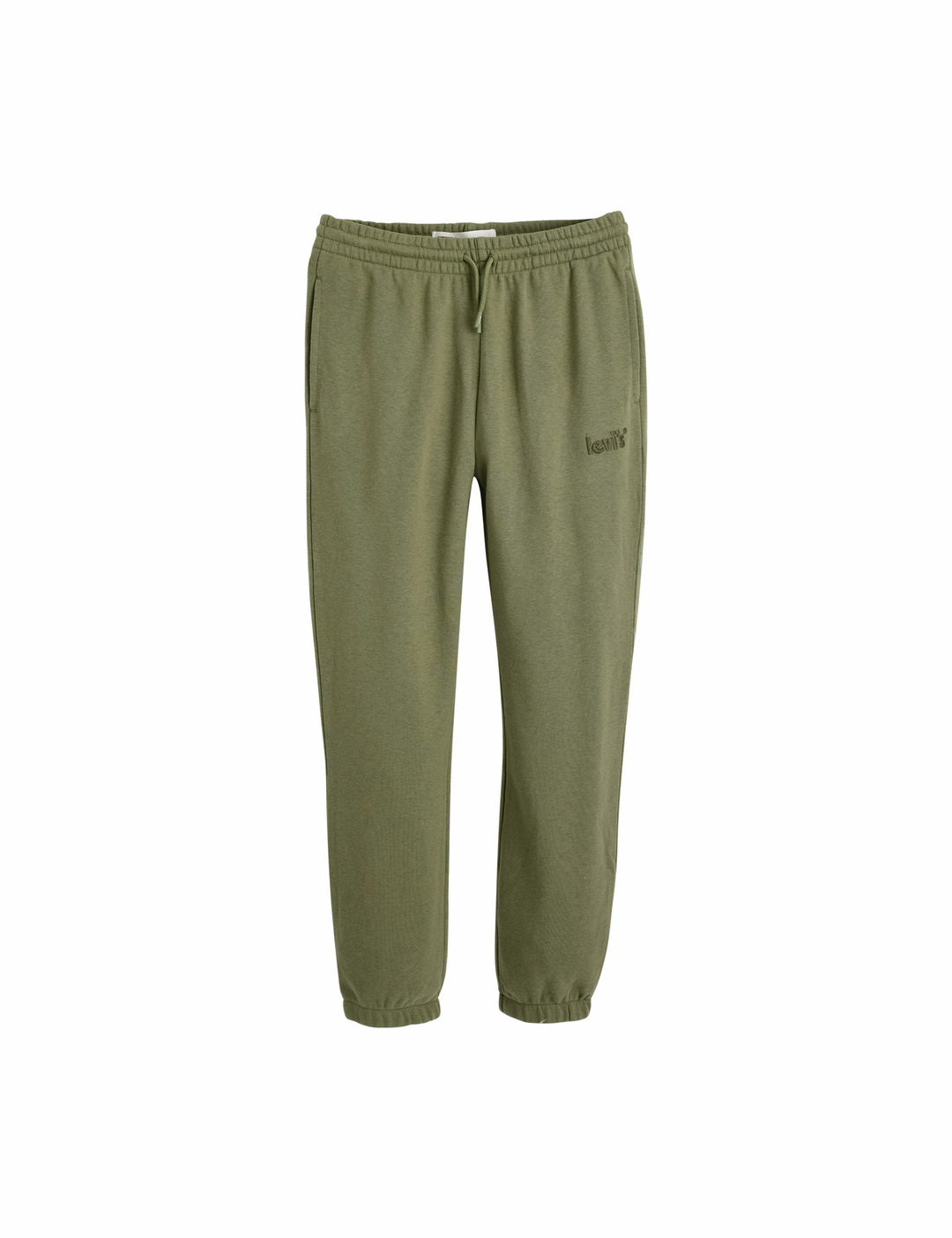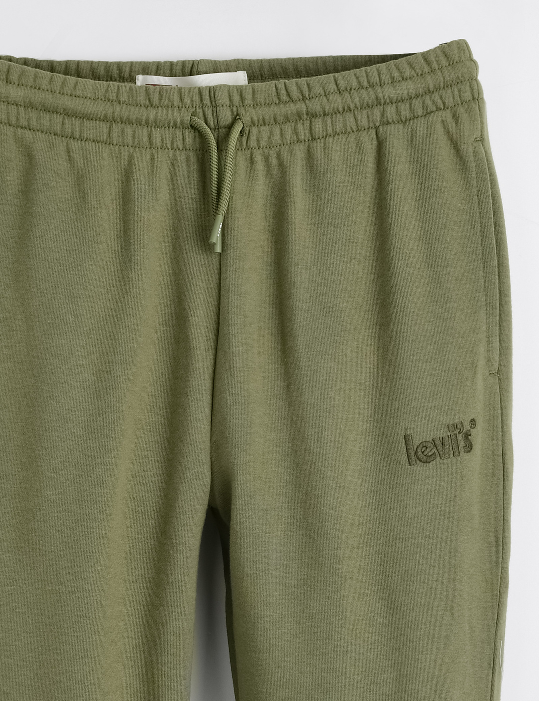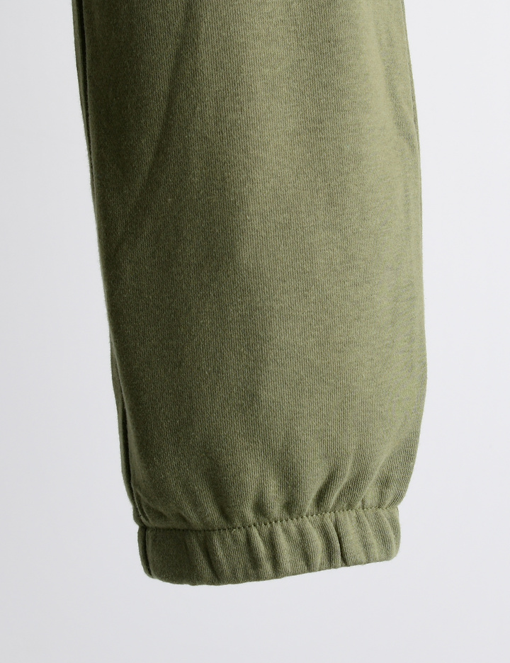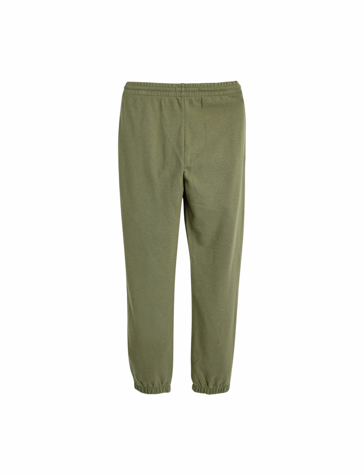 포스터 자수로고가 포인트로 들어가 있는 여유있는 핏의 프렌치테리 조거 팬츠.