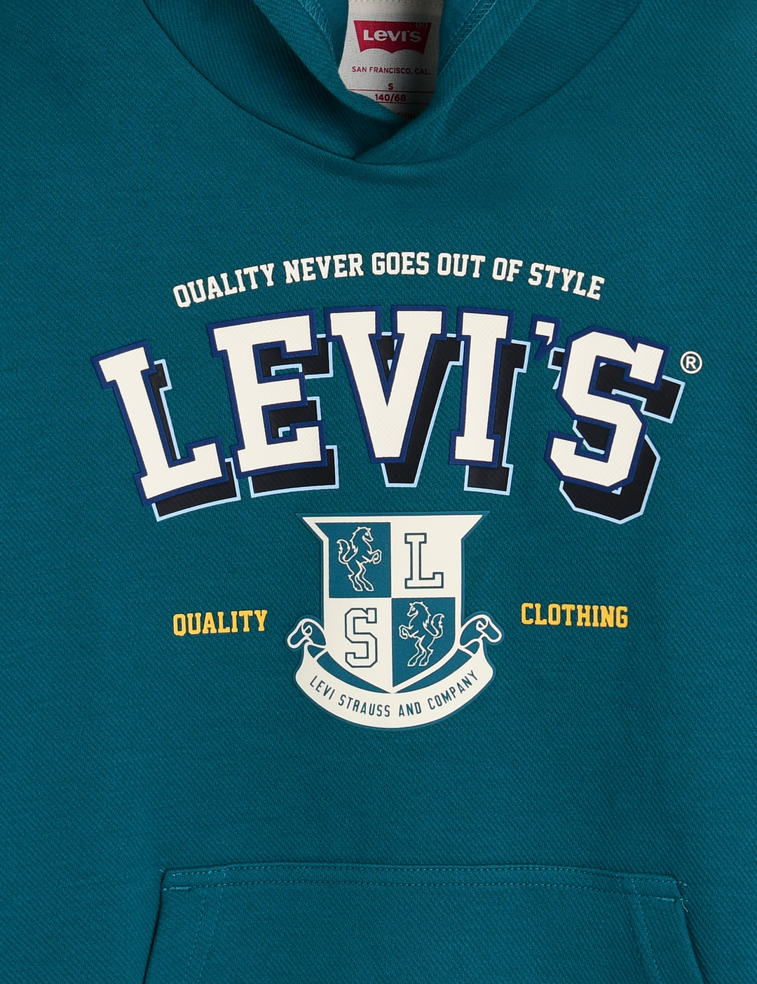 부드러운 촉감의 275g 프렌치테리 소재를 사용하였으며, 캠퍼스느낌의 로고프린트가 포인트인 후드 티셔츠