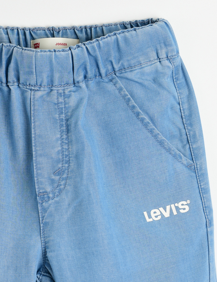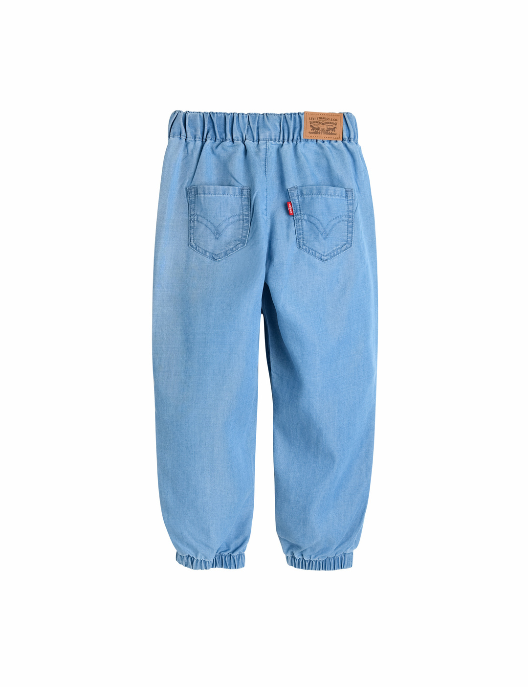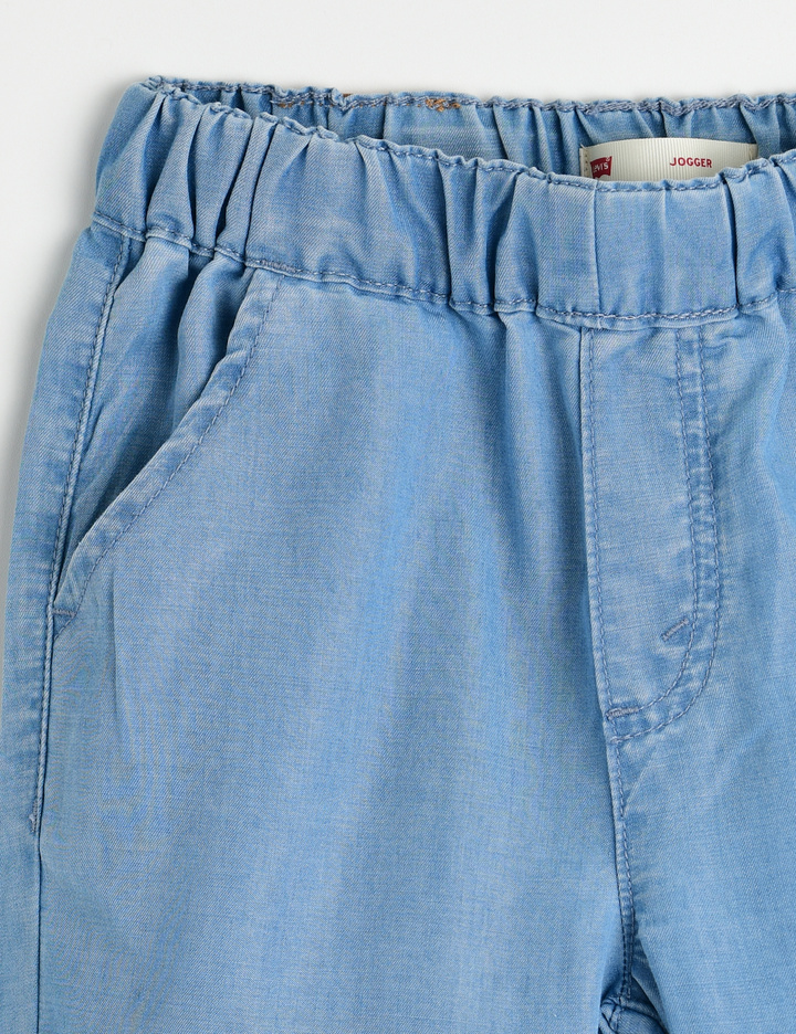 허리가 밴딩으로 되어 입기 편하며, 밑단을 접어 입는 라이오셀 혼방소재로 가볍고 통기성이 좋은루즈핏의 데님 풀온팬츠