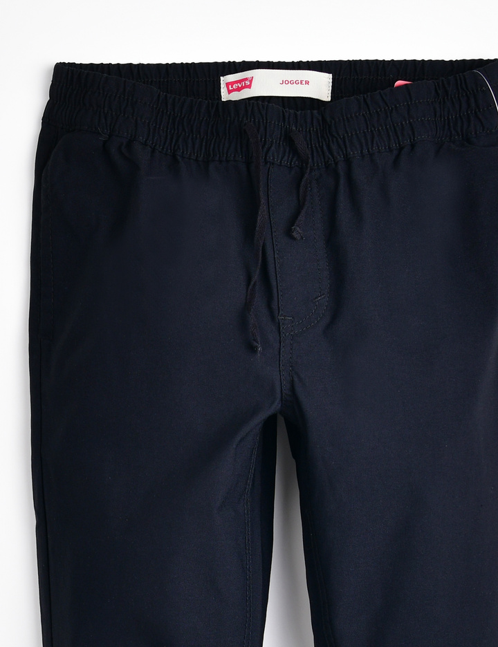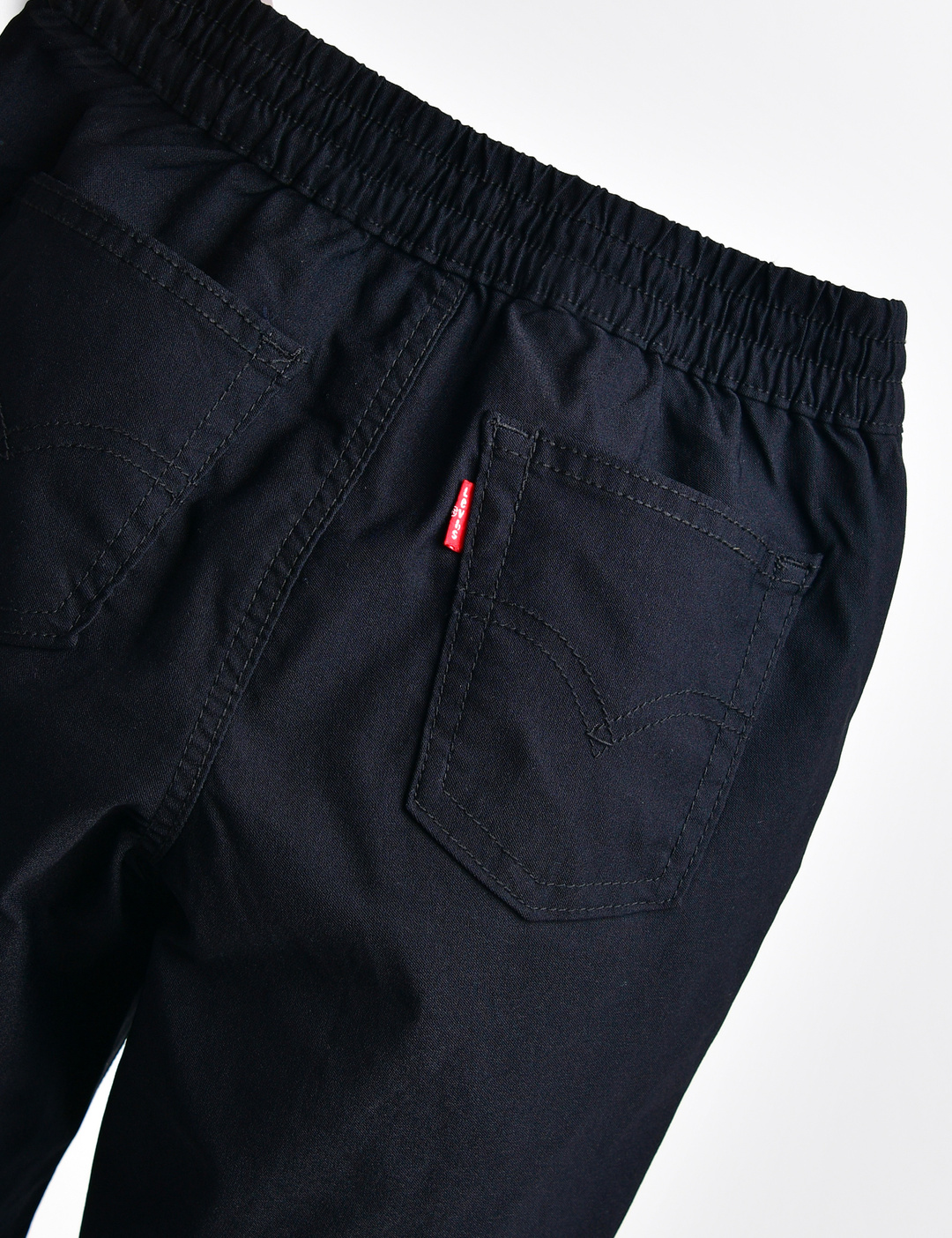 가볍고 신축성 있는 나일론 혼방소재를 사용해 활동성을 높이고, 허리는 스트링으로 조절이 가능한 우븐풀온 팬츠
